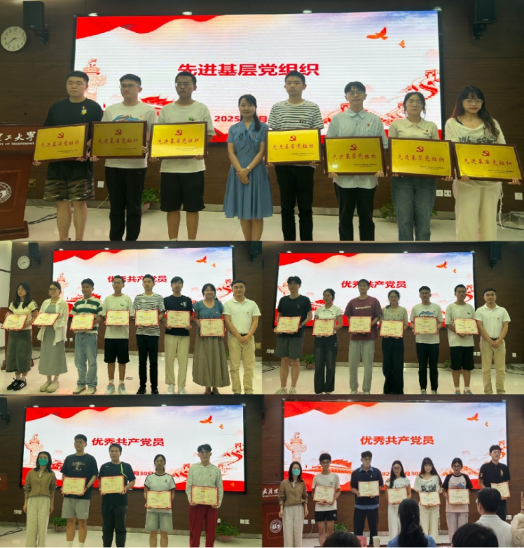 表彰大会在庄严的国歌声中拉开序幕,沈国芳副书记宣读了材料科学与工程学院关于表彰2024-2025学年先进基层党组织、优秀共产党员的决定,对材料学院材料科学系本科生第一党支部等7个学生先进基层党组织、谭贵涛等26名学生优秀共产党员予以表彰,罗小寒书记、沈国芳副书记、副处级组织员朱莉为优秀共产党员和先进基层党组织颁发荣誉证书。
