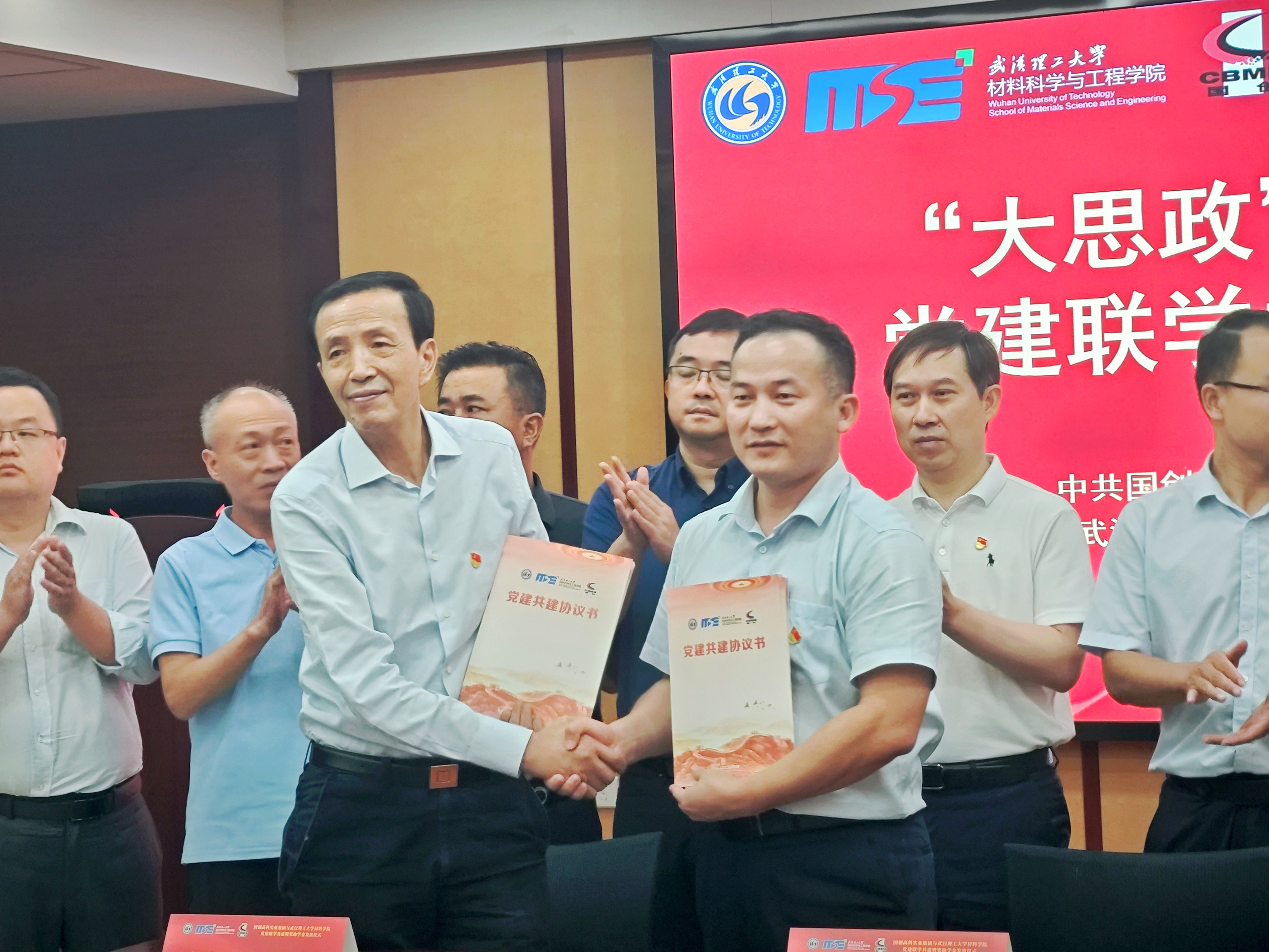 随后,国创集团高庆寿、材料学院罗国强分别代表中共国创高科实业集团有限公司委员会、中共武汉理工大学材料科学与工程学院委员会签署校企党建共建协议书,并共同为“党建共建单位”挂牌,全场响起热烈的掌声。