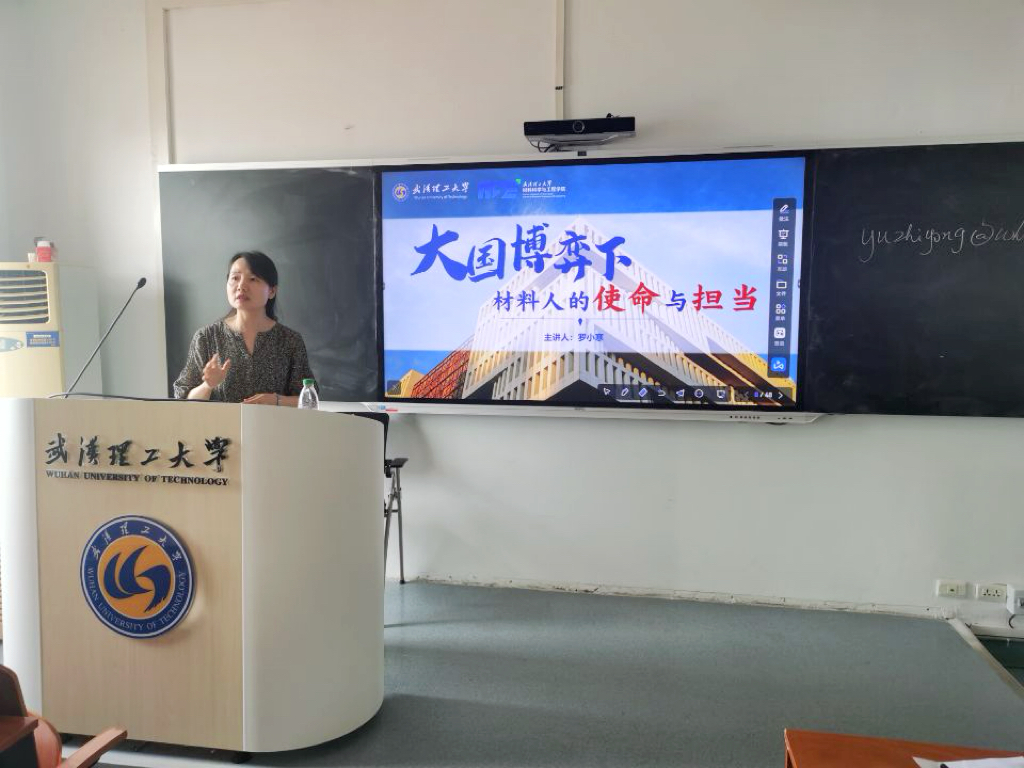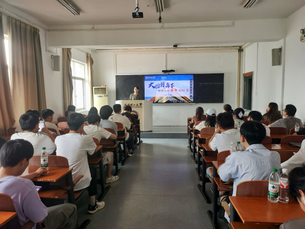 7月7日,材料学院党委书记罗小寒在工大楼604为学生讲授思想政治理论课,以《大国博弈下,材料人的使命与担当》为主题,通过历史纵深与科技前沿的双重视角,深刻阐释材料学科与国家命运的紧密联系,勉励学生筑牢思想根基,树立材料报国之心。