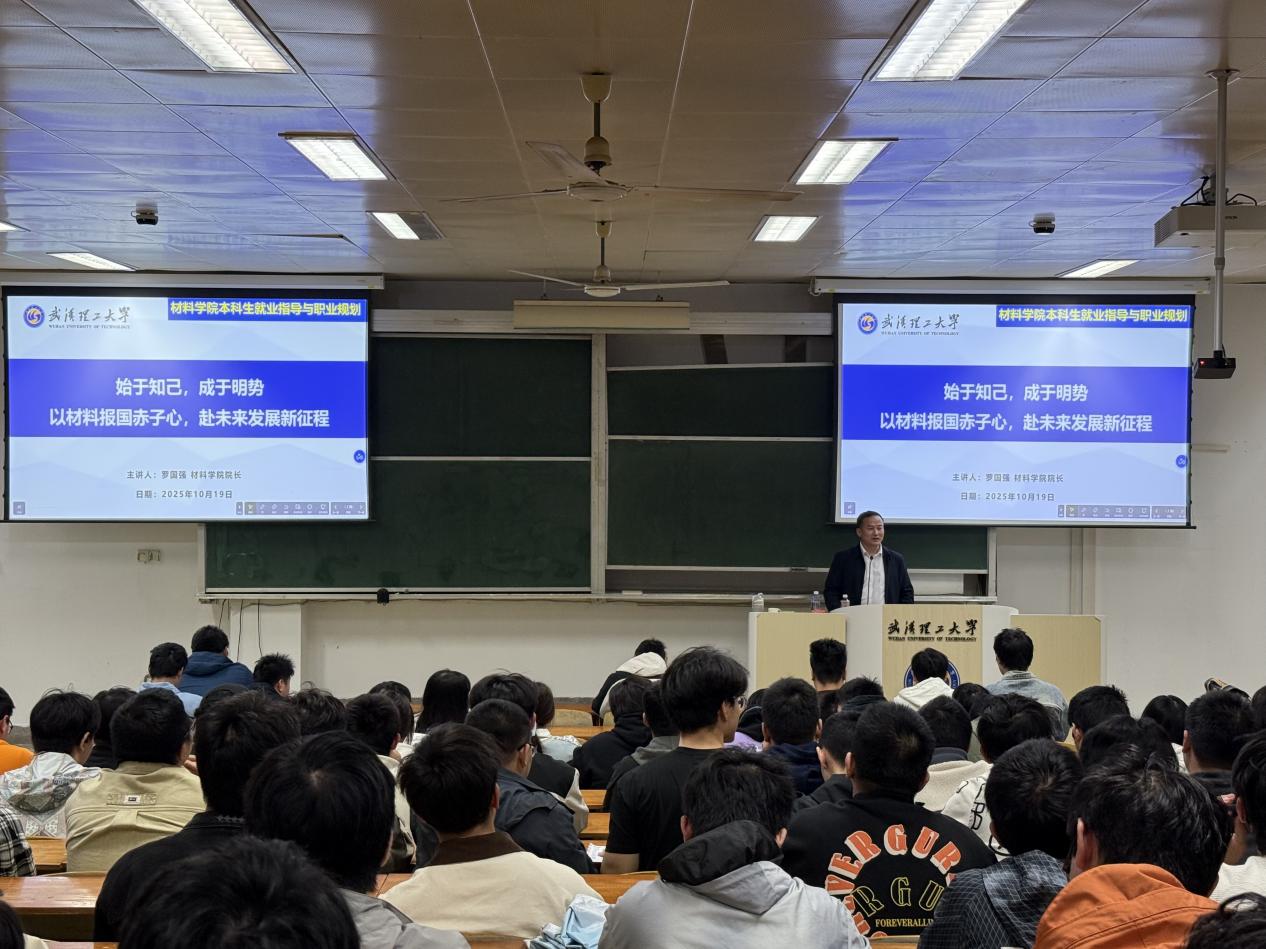 为帮助2026届本科毕业生明确职业发展方向,破解毕业抉择困惑,10月19日晚,材料学院院长罗国强、党委书记罗小寒在鉴三教学楼202、201,以“以材料报国赤子心,赴未来发展新征程”为主题开展就业指导与职业规划专题讲座。讲座聚焦学子关切,从自我认知、行业形势、路径选择等维度深入讲解,为即将迈入大四冲刺阶段的学子送上职业规划指南。