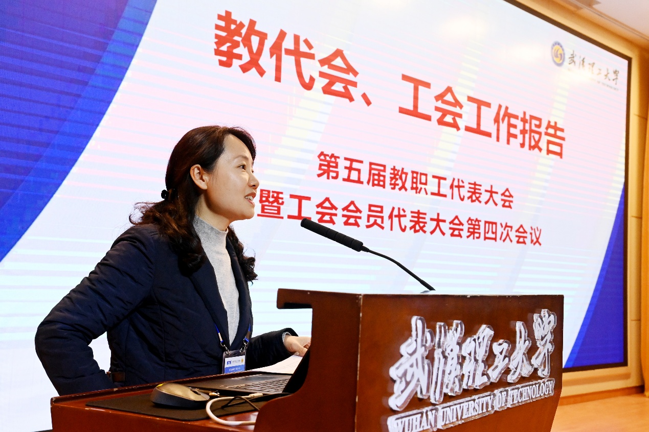 学院党委书记、工会主席罗小寒作教代会、工会工作报告。报告认真总结了2025年学院工会在强化思想政治引领、完善教代会制度、弘扬优良师德师风、组织文体活动、开展消费帮扶慰问、加强自身建设等方面所做的工作和取得的成绩,并提出了2026年工作计划。同时,她对学院《2025年度目标业绩绩效分配方案》《2025年度突出贡献绩效分配方案》《材料科学与工程学院水电管理办法(试行)》《材料科学与工程学院公房优化配置及有偿使用管理办法(试行)》等做了详细说明,提请与会代表们讨论。