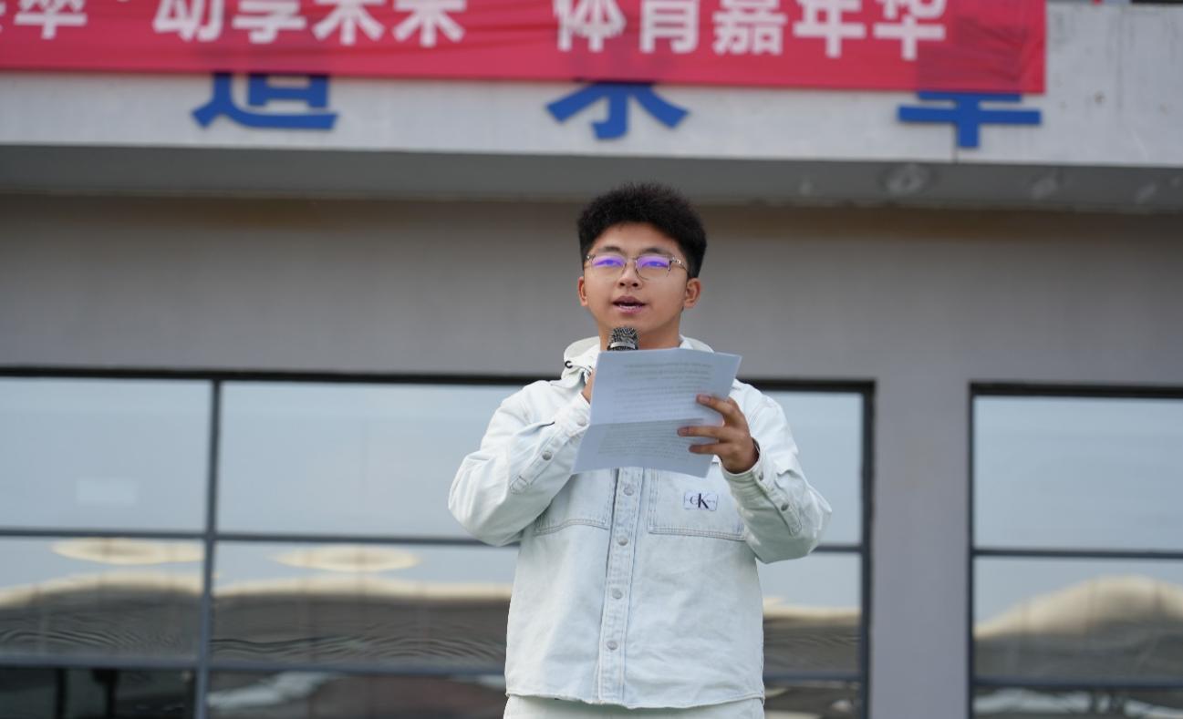 Guan Shangjun, a student representative from the Class of 2024 undergraduate cohort, delivered a speech expressing gratitude for the distribution of sports supplies. He pledged that students would make good use of the supplies, develop a healthy habit of doing sports, and carry the values of teamwork and perseverance into their studies and daily life.