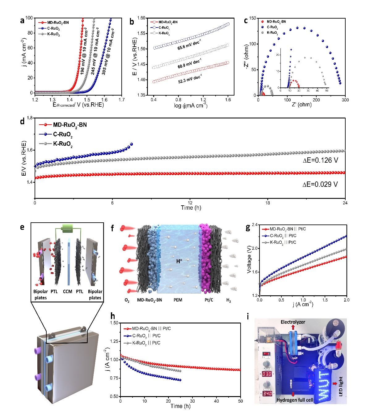 Figure 2: Water oxidation and electrolysis performance of MD-RuO₂-BN catalysts