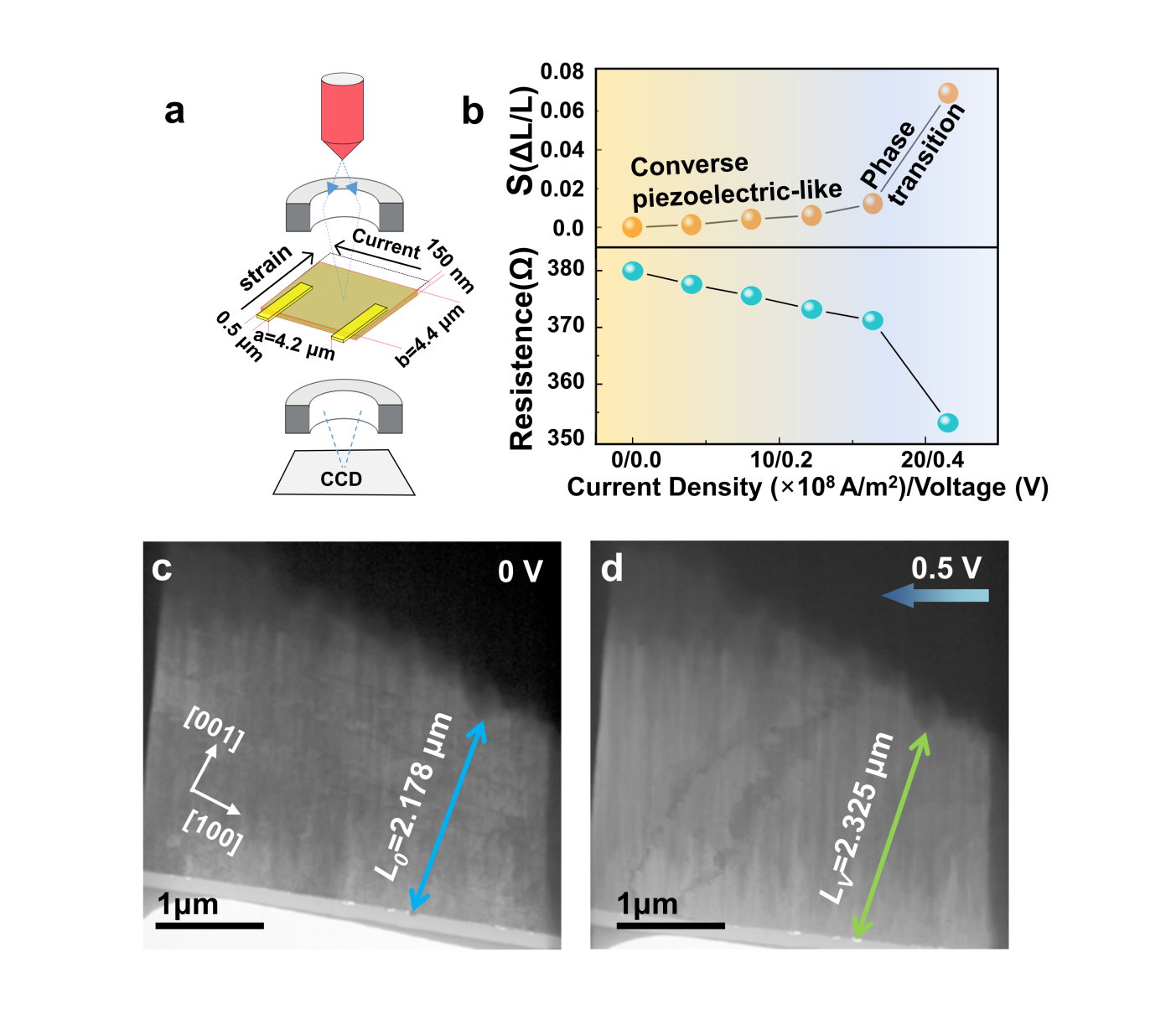 Using high-resolution in-situ TEM imaging, researchers directly observed microstructural evolution and phase transitions under current flow. Selected-area electron diffraction (SAED) provided precise insights into crystal orientation and phase changes, revealing new electromechanical strain mechanisms.