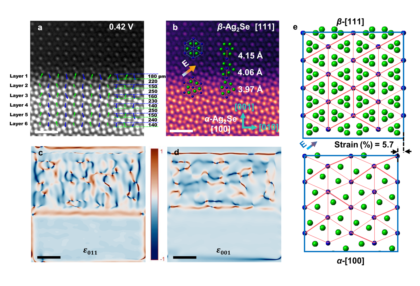 Figure 1: In-situ TEM observation of electromechanical strain in Ag₂Se thin films