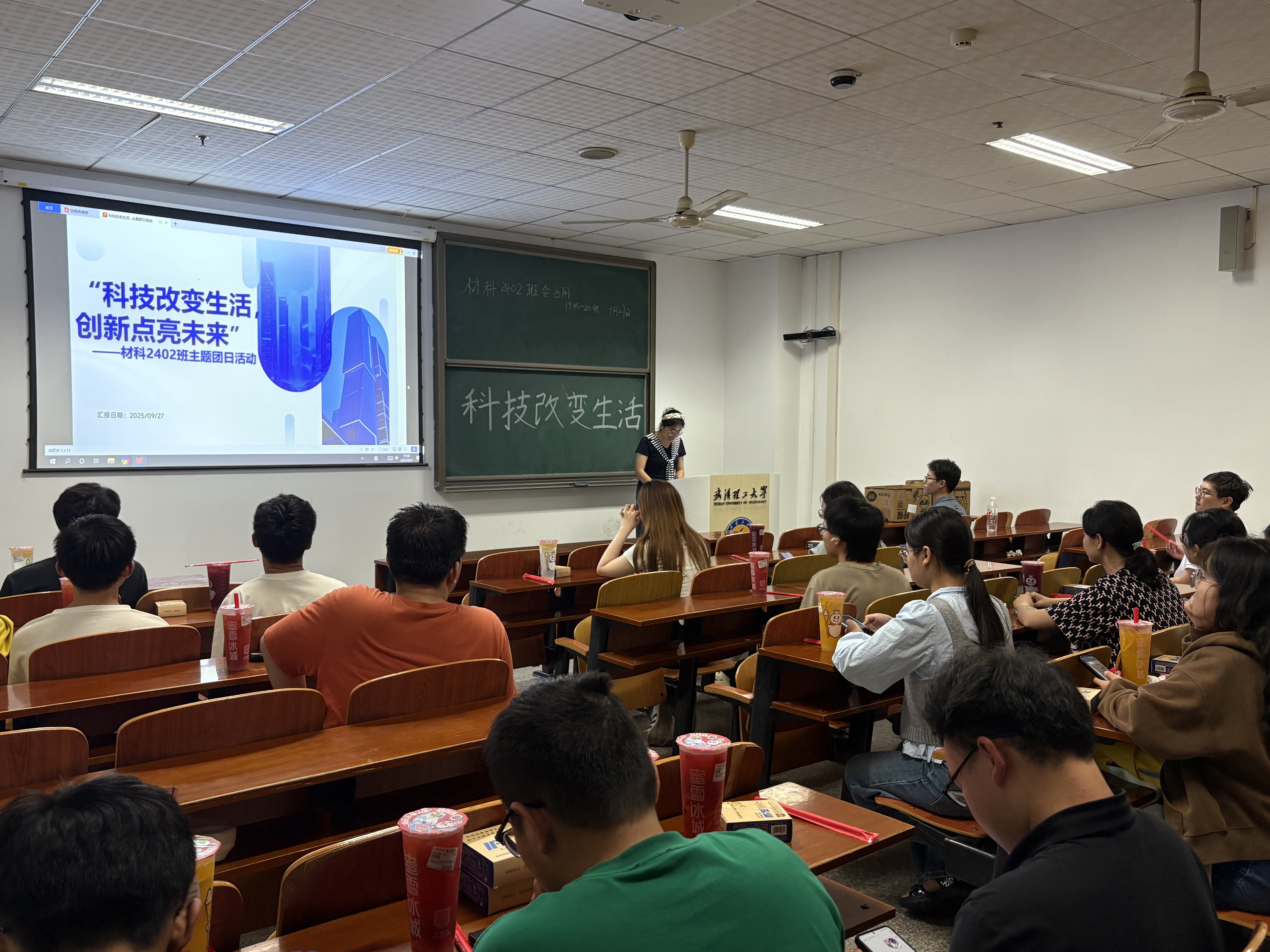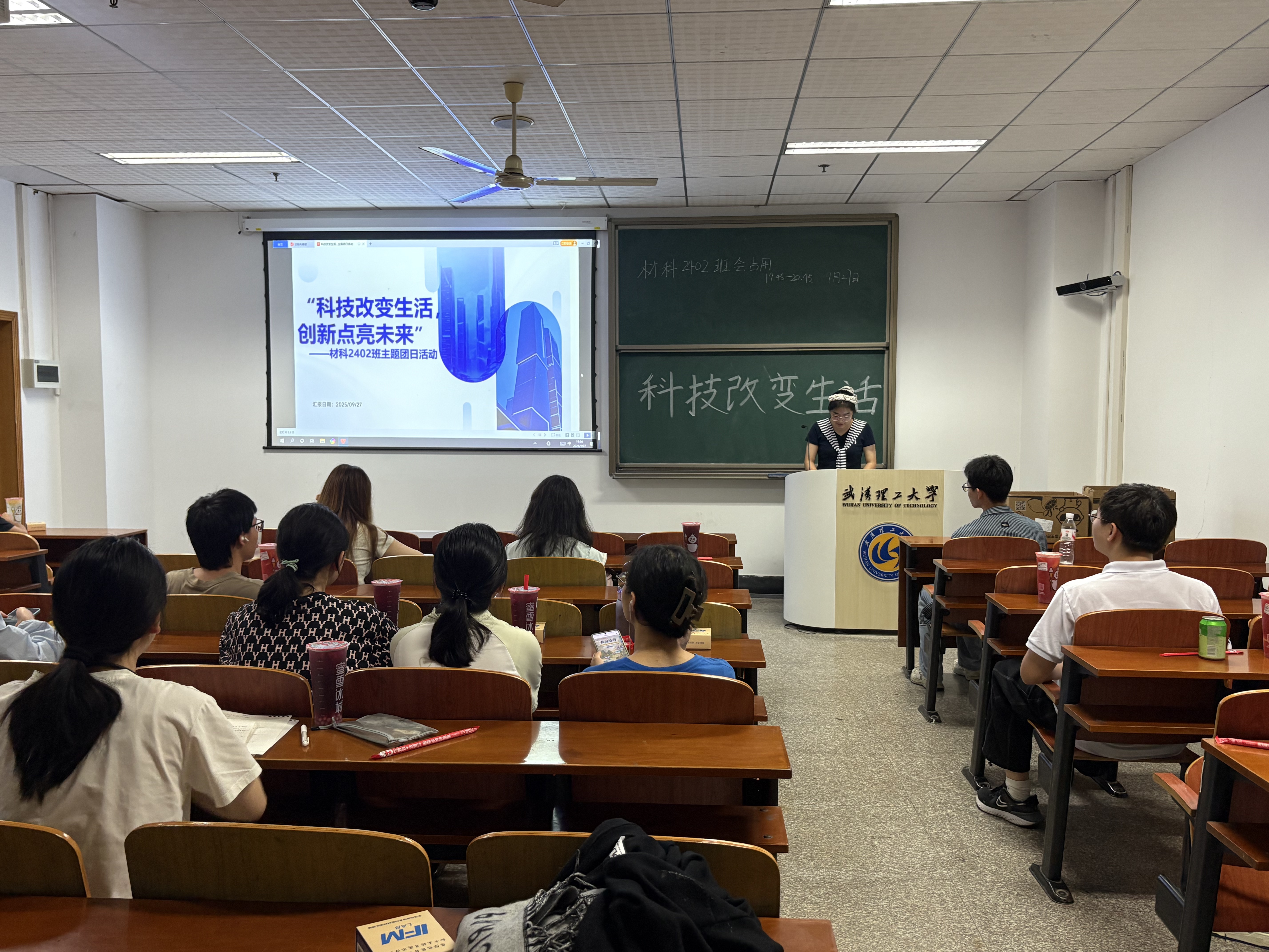 为引导青年学生感受科技魅力、树立创新意识,在全国科普月活动氛围下,材科2402班于2025年9月27日晚上在艾特楼104教室开展“科技改变生活,创新点亮未来”主题团日活动。由团支书尹曼璐担任主讲人,材科2402班全体同学参与。