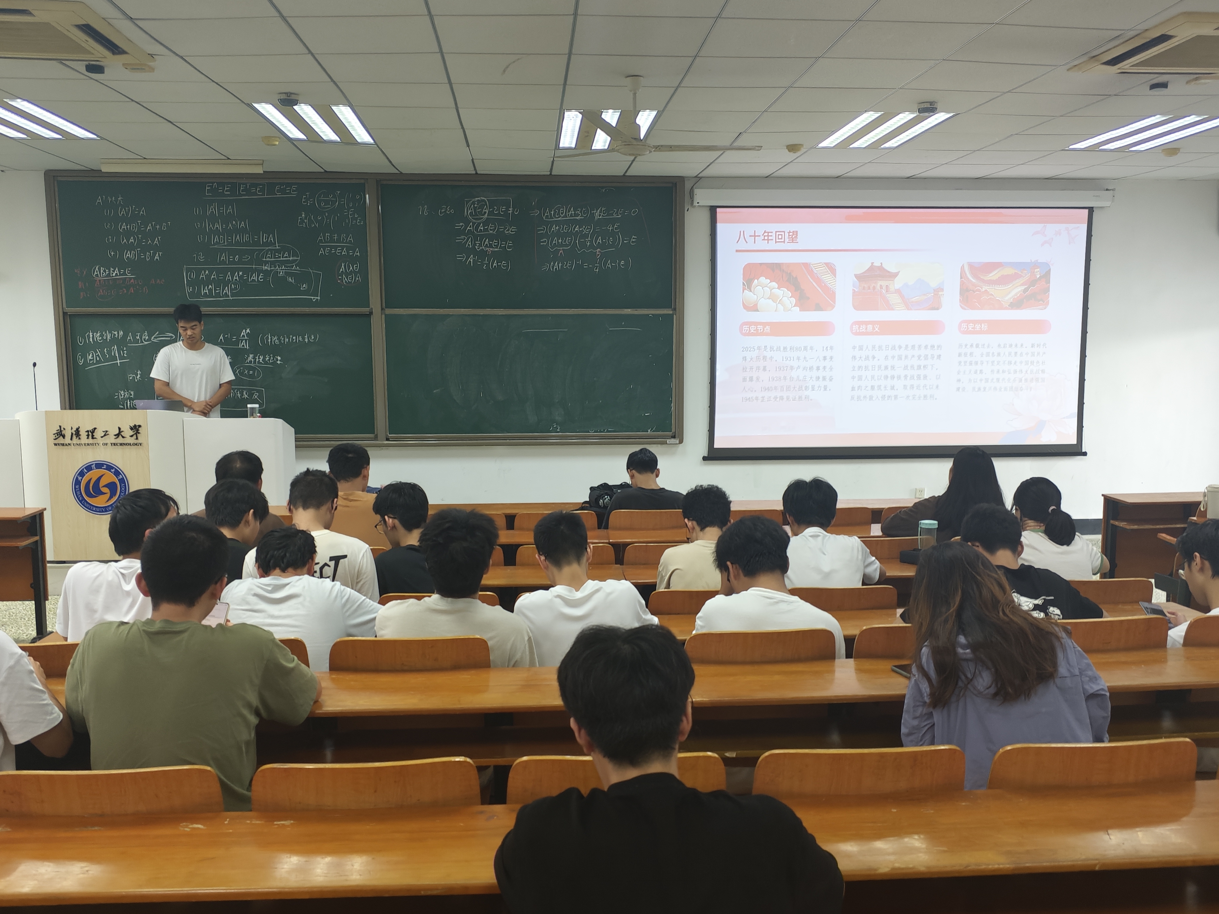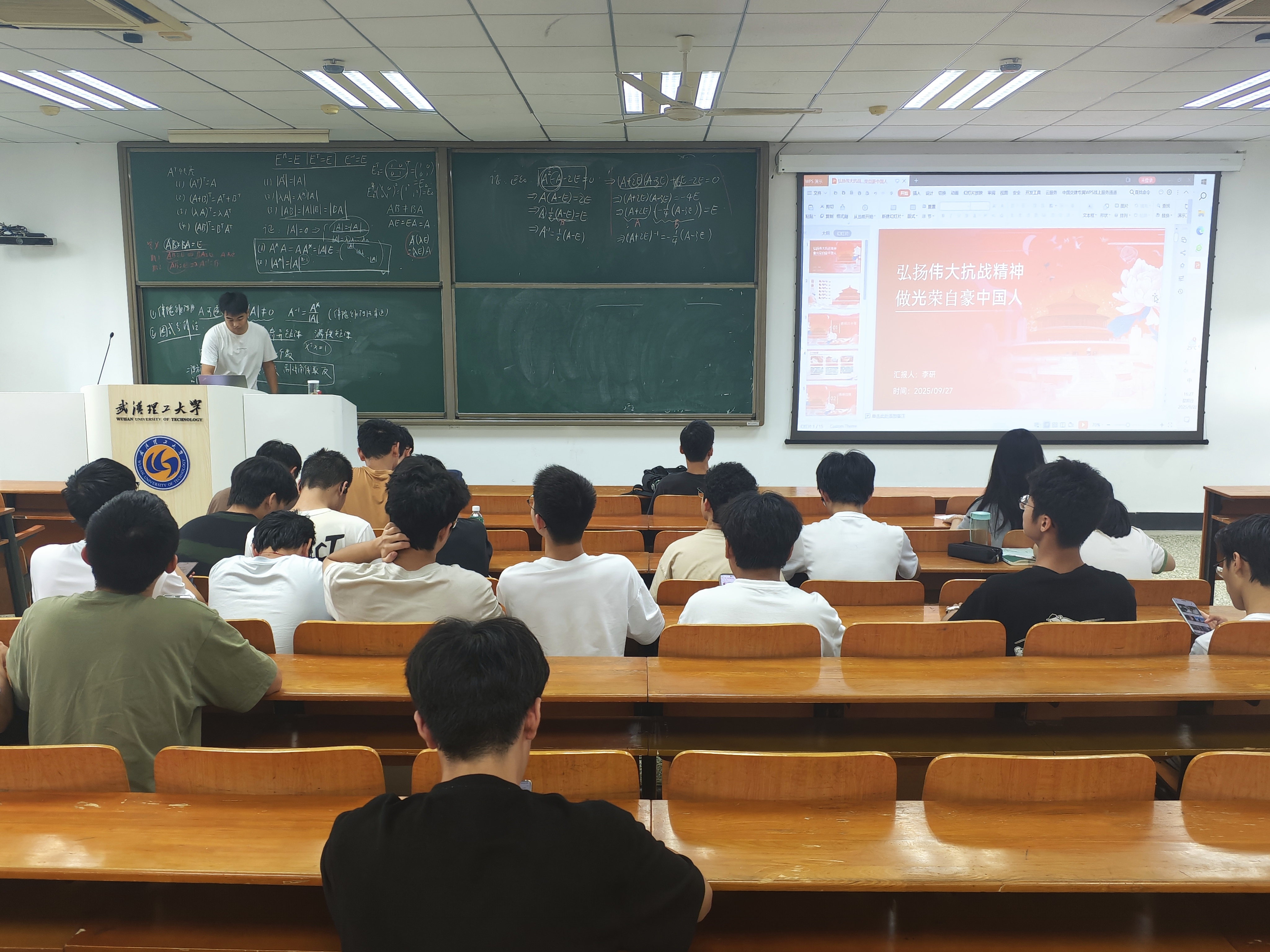9月28日下午4点30分,成型2401班“弘扬伟大抗战精神,做光荣自豪中国人”主题班会在博学主楼106教室举行。团支书李研担任主讲,全班同学共同参与。