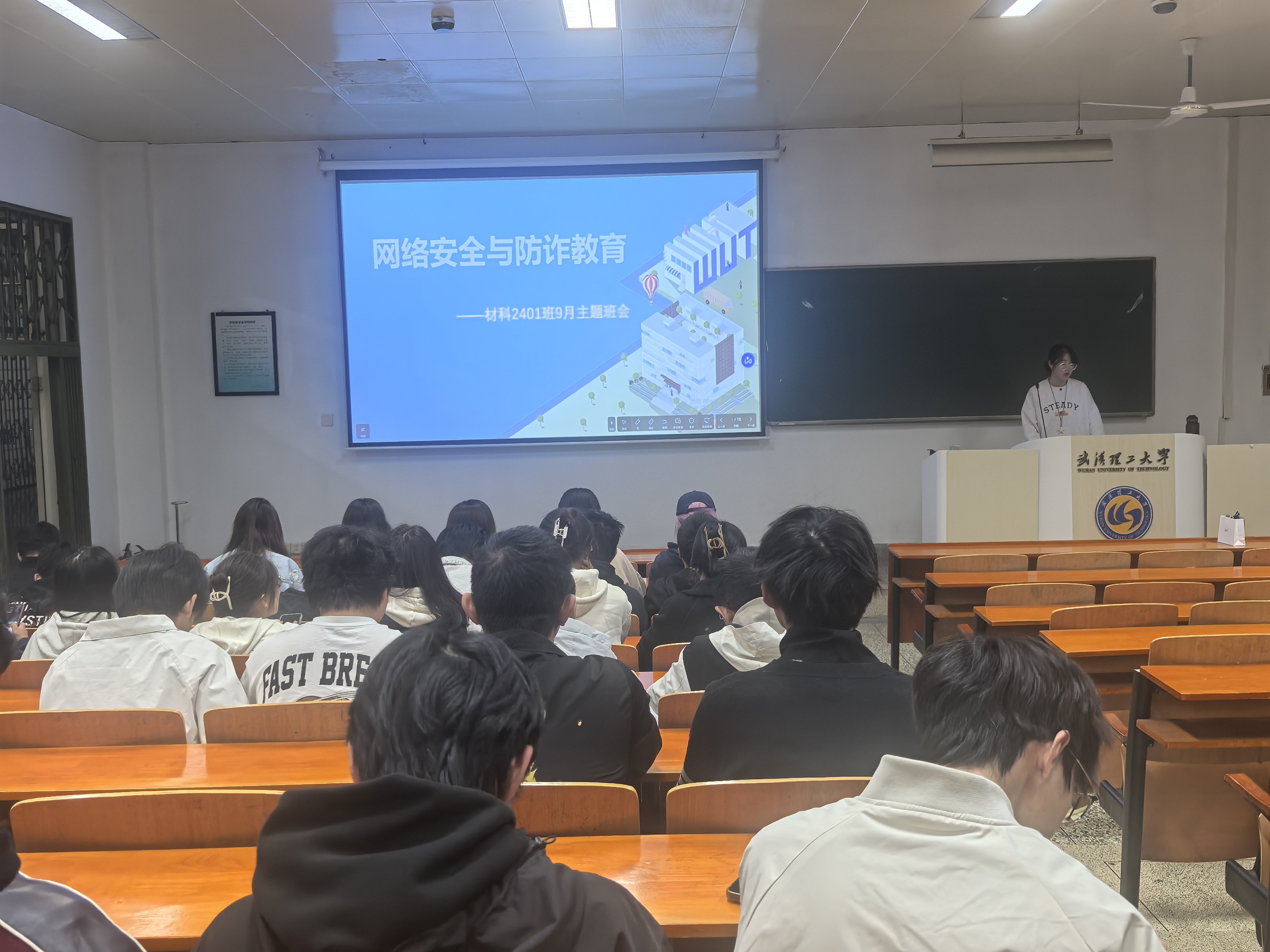 为增强同学们的网络安全防范意识,提升应对诈骗的能力,引导青年学子筑牢校园防诈“安全线”,材科2401班于10月26日晚在鉴三501教室成功举办“网络安全与防诈教育”主题班会。此次班会由班长孙嘉洋主持,全体同学积极参与并进行了热烈讨论。