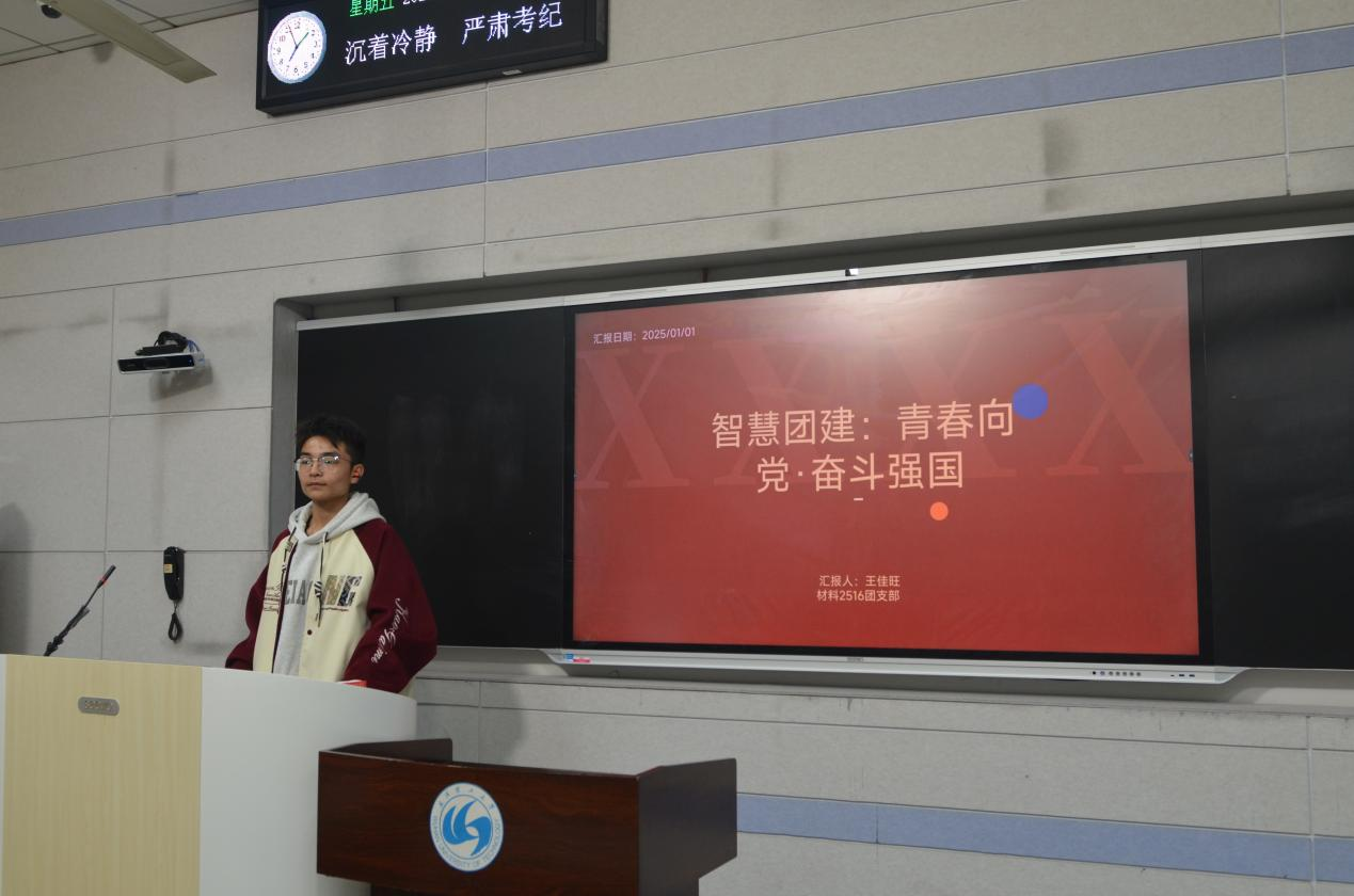 2025年11月21日,材料类2516团支部“青春向党·奋斗强国”智慧团建主题团会在博学西楼109召开。本次团会围绕贺信精神学习、全会精神解读、就业观念引导、智慧团建实操等内容展开,由团支书王佳旺主持,班主任常明老师出席。