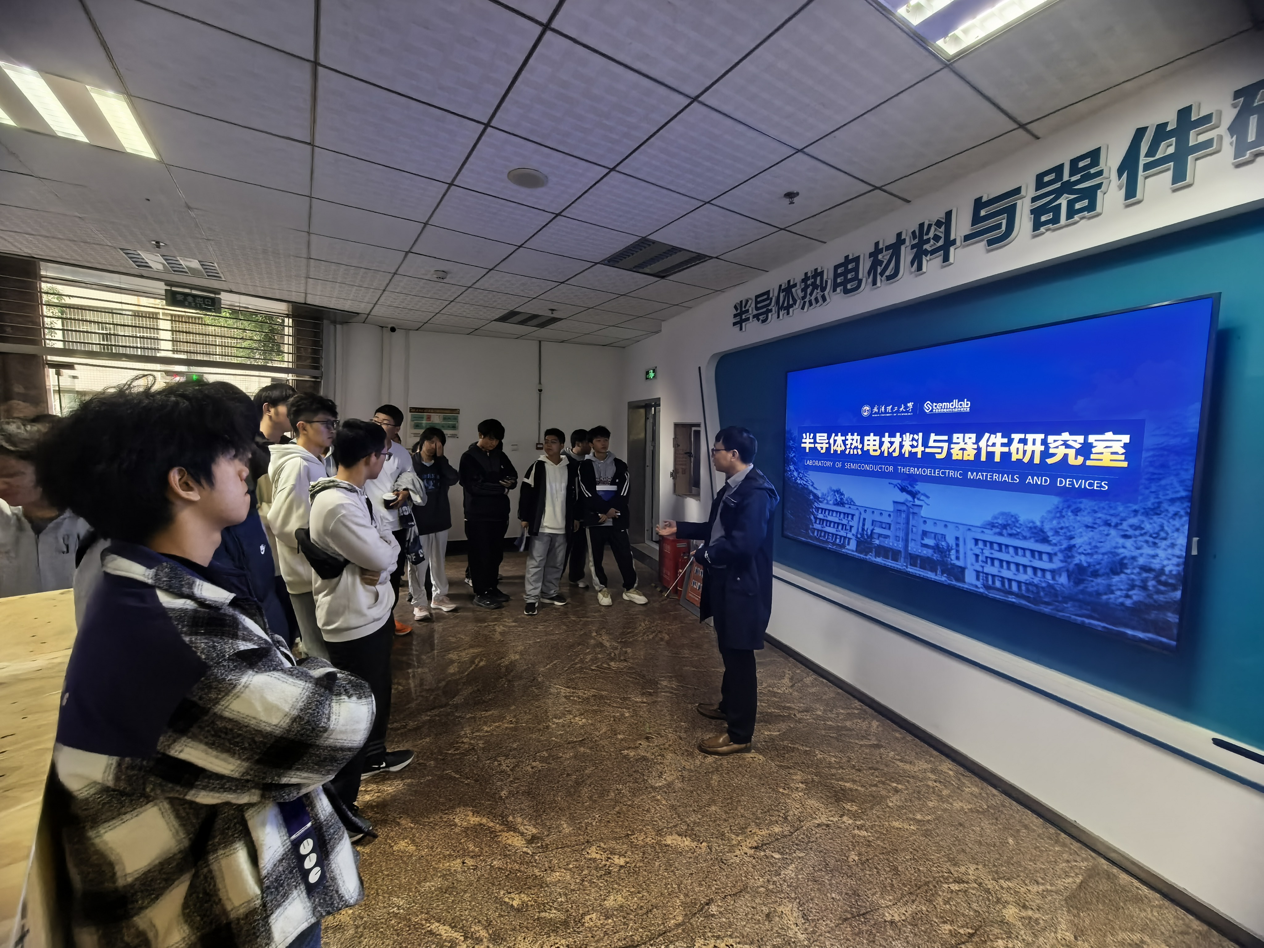 在半导体热电材料与器件研究室,柳伟老师通过问答互动,生动阐明了热电材料的核心使命——将废热定向转化为电能,以实现节能与绿色可持续发展。他细致讲解了热电技术的发展历程、温差发电原理及当代社会需求,并举例说明其应用场景。为了让同学们有更直观的感受,柳老师还让大家亲手触摸小型热电器件,亲身体验其高效的温度响应能力。这一互动环节将抽象知识转化为真切体验,现场响起阵阵赞叹。