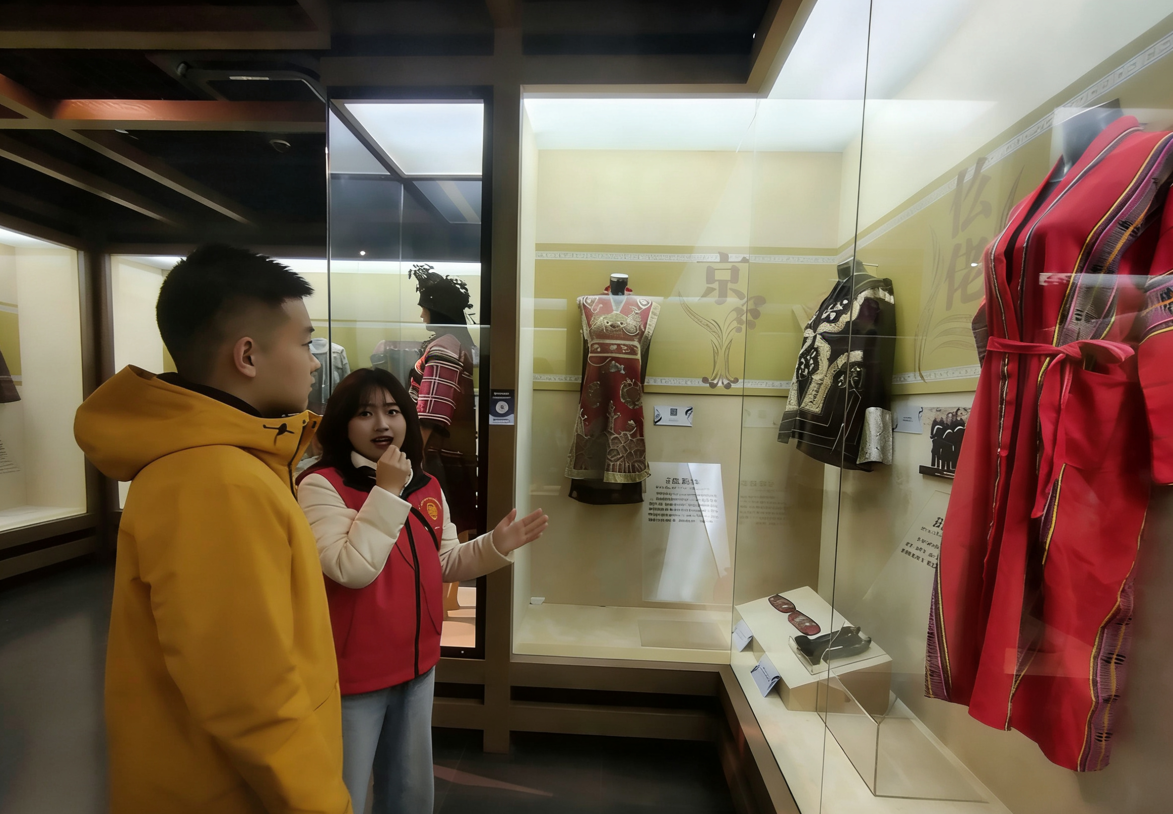 活动伊始,在博物馆专业讲解员的引导下,团员们结合博物馆“收藏民族瑰宝、展示民族文化、促进民族团结”的宗旨,了解了各类藏品的历史背景与文化价值。大家依次参观了民族服饰厅、传统工艺厅、民俗生活展区等核心展区,近距离观摩苗族银饰、侗族鼓楼模型、藏族唐卡等珍贵文物,聆听关于各民族生产生活、非遗技艺及其交融发展的生动讲解。参观过程中,团员们认真聆听、积极记录,并围绕展品文化内涵与讲解员互动交流,学习氛围浓厚。