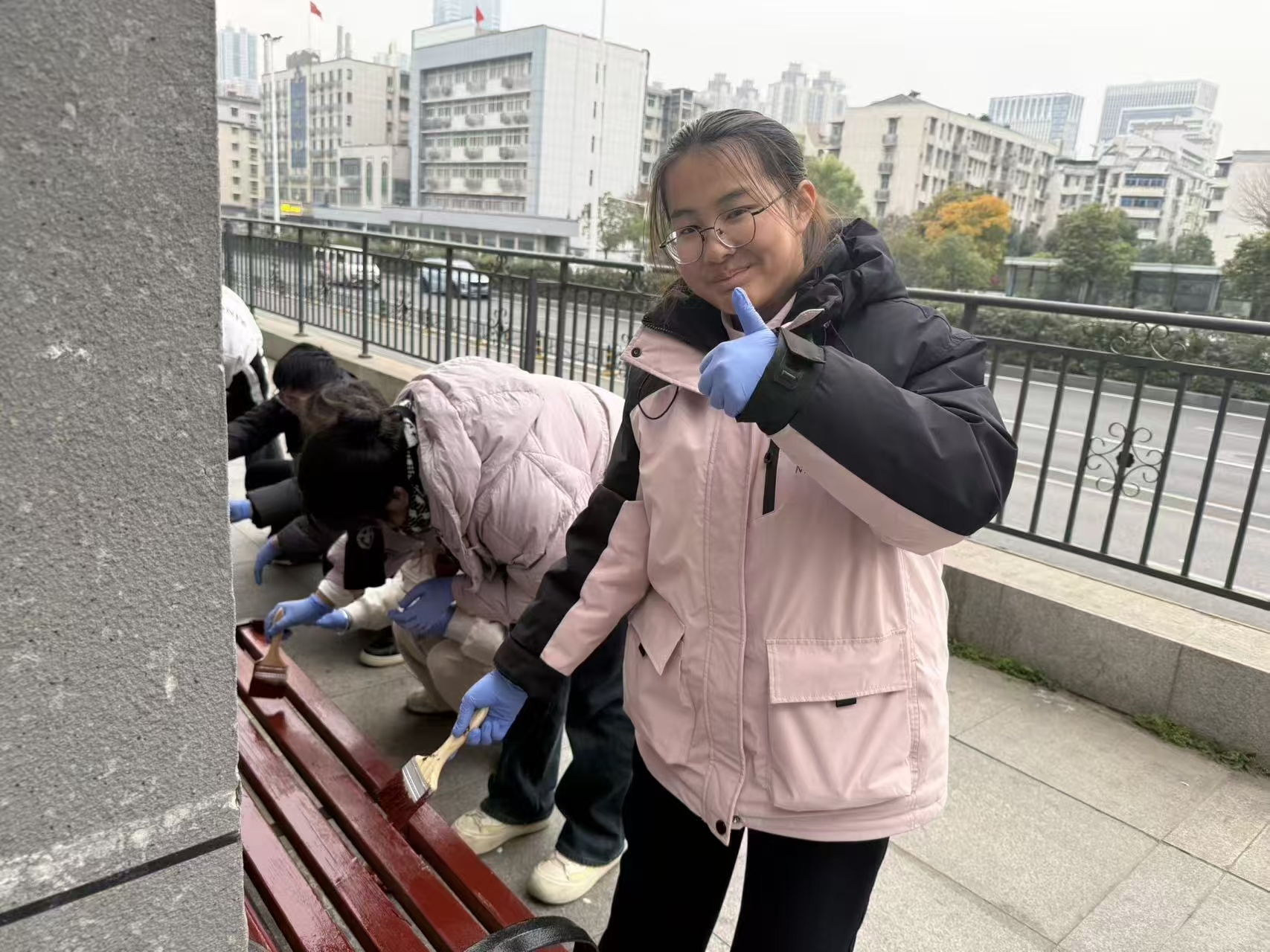 为弘扬志愿服务精神,改善社区公共设施,12月4日下午,材料类2503班于珞南街道黎明社区开展了社区志愿服务活动,对辖区内老旧、掉漆的休闲座椅和扶梯栏杆进行了集中清洁与粉刷。