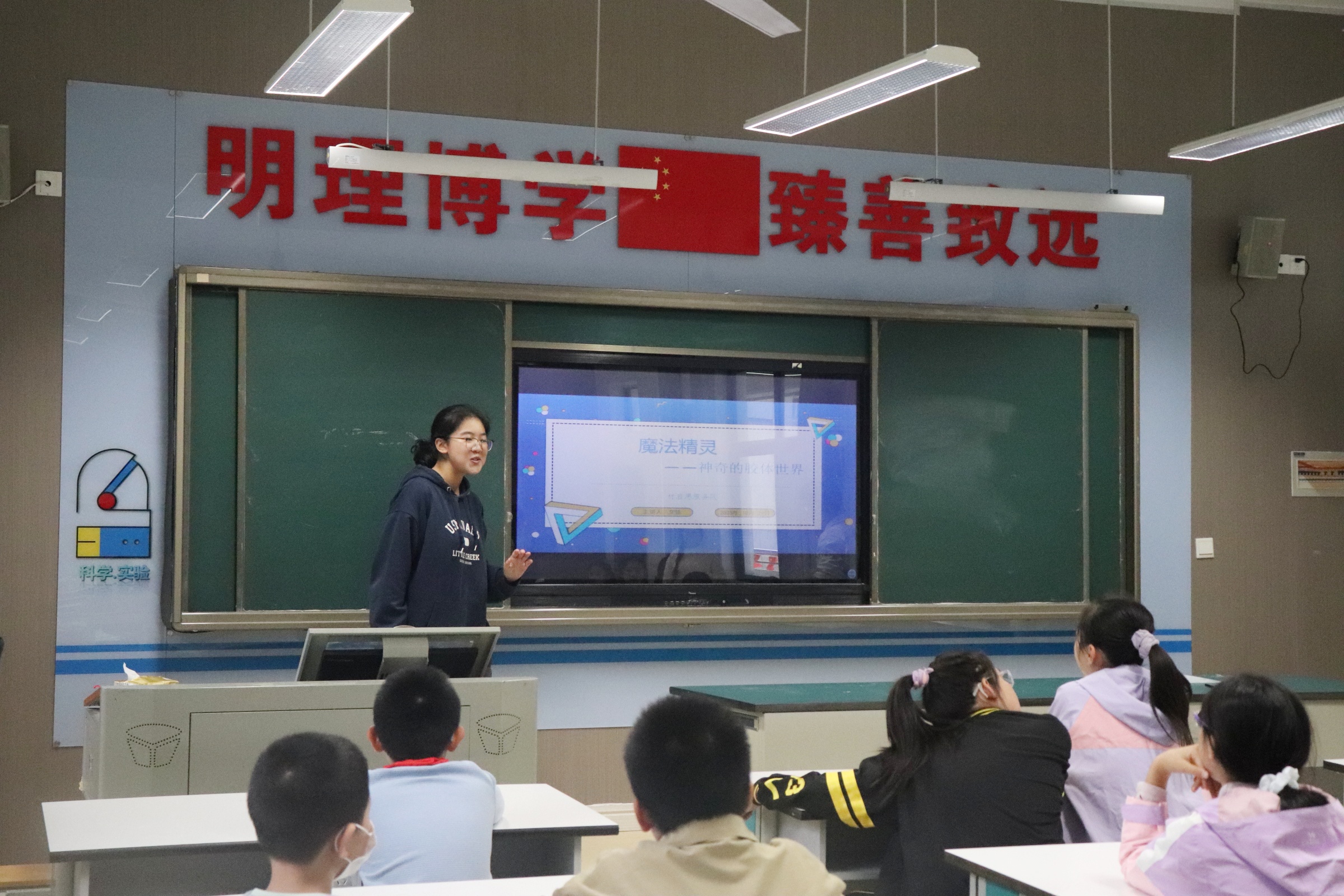 2025年10月29日下午4时,材启思服务队在武汉理工大学附属小学(以下简称“武理附小”)成功举办了一场题为“魔法精灵——神奇的胶体世界”的科普课程,带领小朋友们探索材料科学的奥秘。
