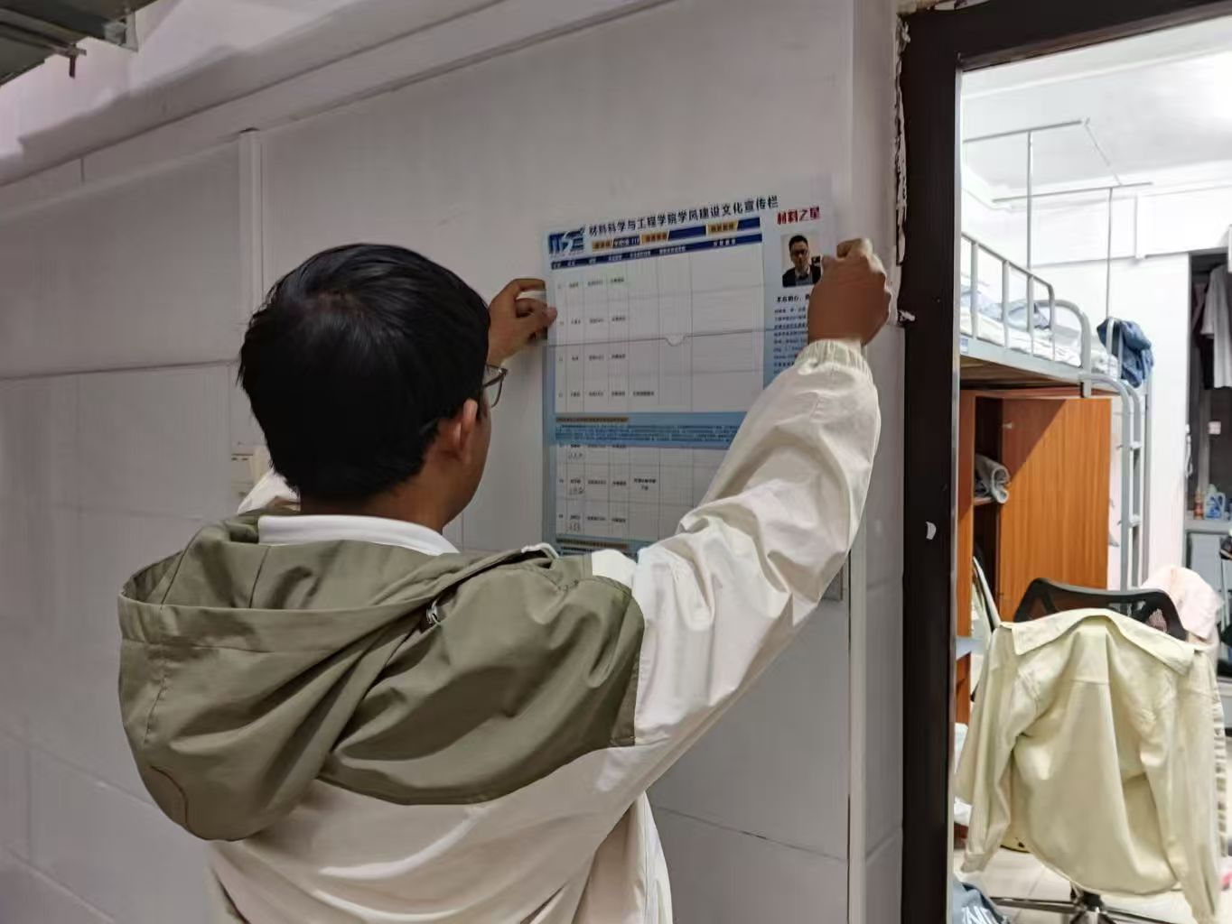 寝室门牌与走廊展板作为学院宿舍文化建设的重要载体,既是学生信息与荣誉成果的集中展示,也是引导学生见贤思齐、比学赶超的重要窗口。此次更新工作美化了宿舍环境,增强了宿舍文化的育人功能,有效提升了材料学院学子的归属感、荣誉感与集体认同感,为持续推进学院高质量人才培养营造了良好氛。