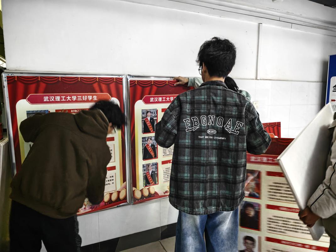 以此为契机,学院同步推进宿舍楼公共空间文化建设,对学海一舍、学海四舍、学海五舍三栋宿舍楼的走廊展板进行了集中更新。12月4日,学院顺利完成108块展板的更换与布置。展板内容涵盖最新标兵班集体、卓越奖学金获得者、优秀党支部风采、“一图读懂”主题展示、防诈骗宣传以及“镜头下的武理”等板块,主题鲜明、内容丰富,生动展现了材料学院学子积极向上的精神风貌和学院扎实的育人成效。