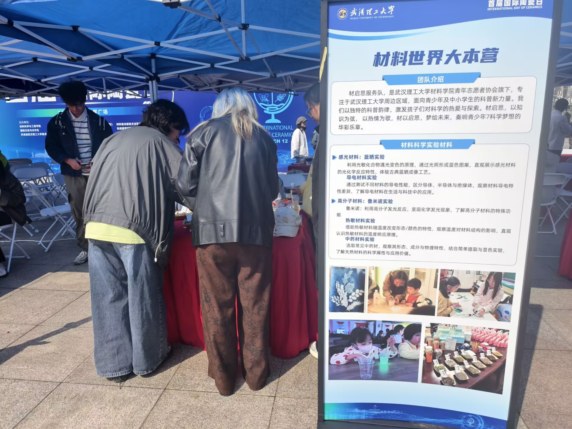 3月12日,为科普介绍材料知识,材启思服务队在首届国际陶瓷日于博学广场向大家展开材料科普实验。