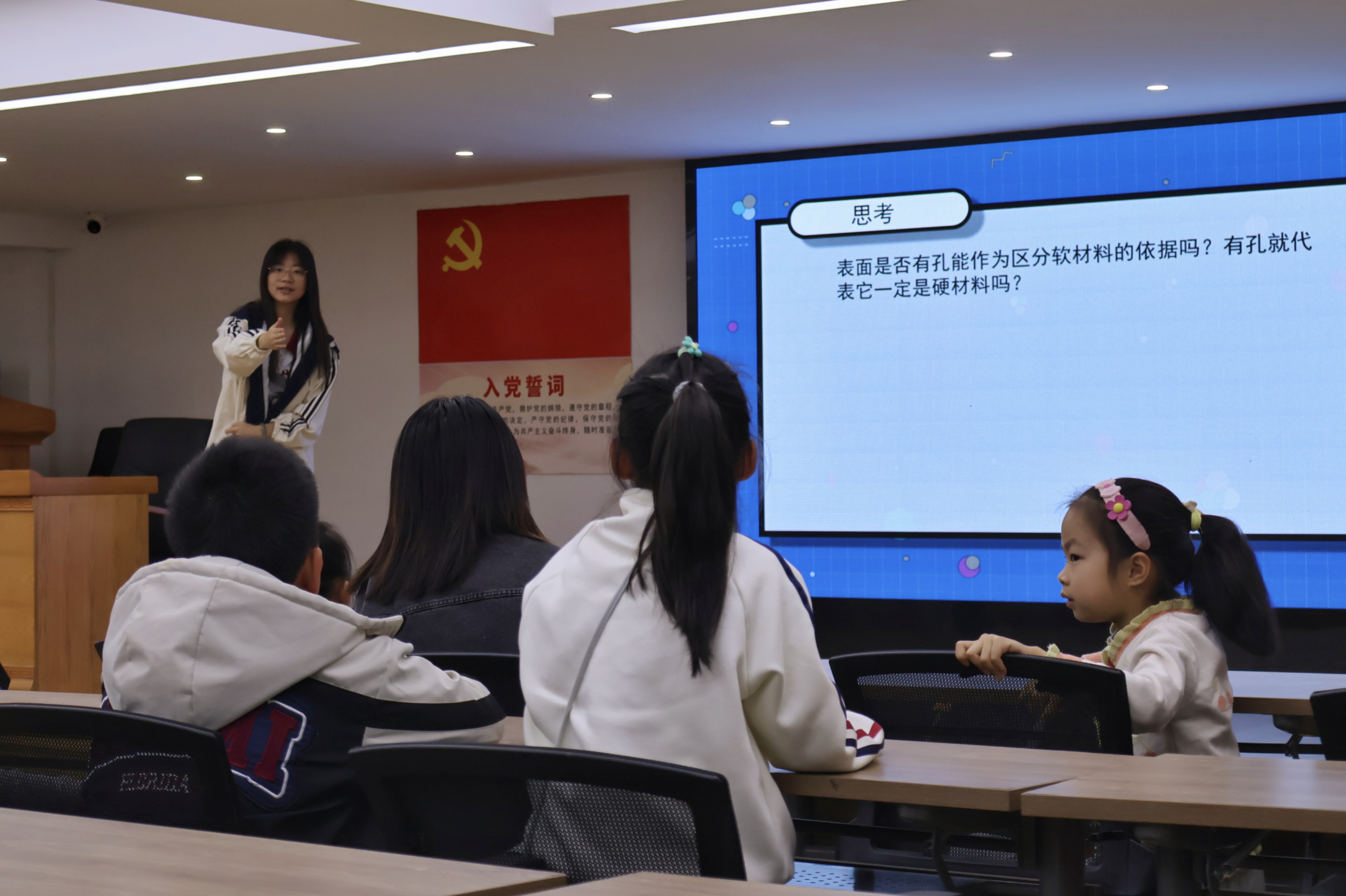 为培养孩子们的科学思维,3月28日,材启思服务队于川江池社区开展“软材料vs硬材料”科普课程,孩子们通过制作灯笼,观察并区分不同材料的物理特性。