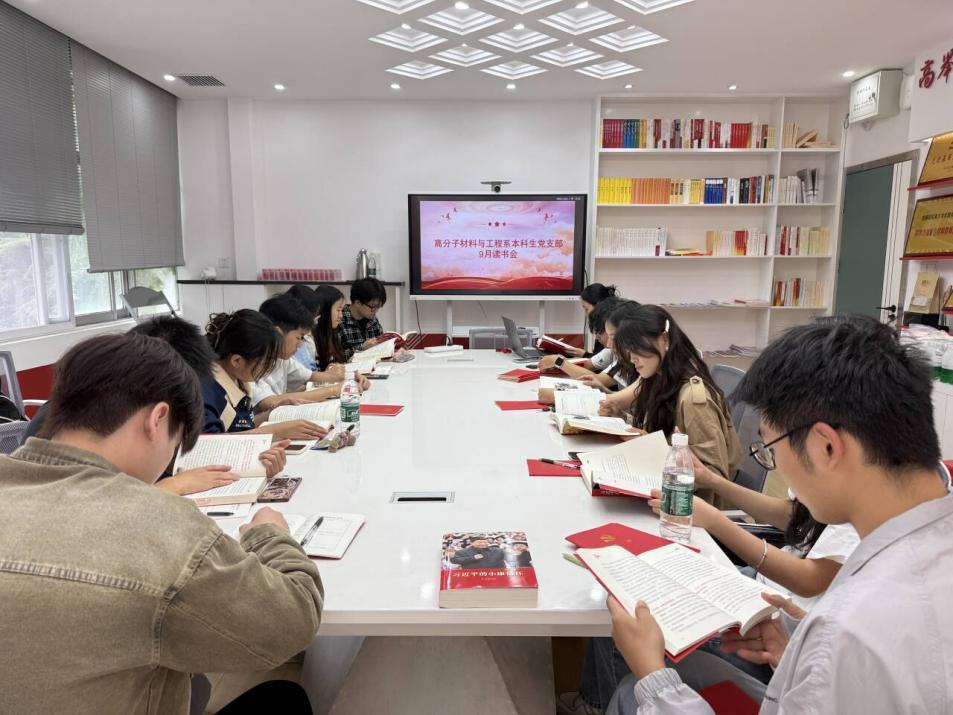2025年9月26日下午,为深入学习贯彻习近平新时代中国特色社会主义思想,不断提升党员的理论素养和政治觉悟,高分子材料与科学系党支部组织开展了主题读书会活动。本次活动以“学习习近平总书记执政理念与治国理政实践”为主题,集中阅读和研讨了习近平总书记在各地考察、调研和工作部署中关于执政和管理的重要论述。
