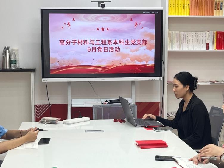 2025年9月26日下午,为深入学习贯彻习近平新时代中国特色社会主义思想,弘扬爱国主义精神,持续推进作风建设常态化长效化,高分子材料与科学系本科生党支部在工大楼321党员活动室开展了主题鲜明、内容丰富的党日活动。