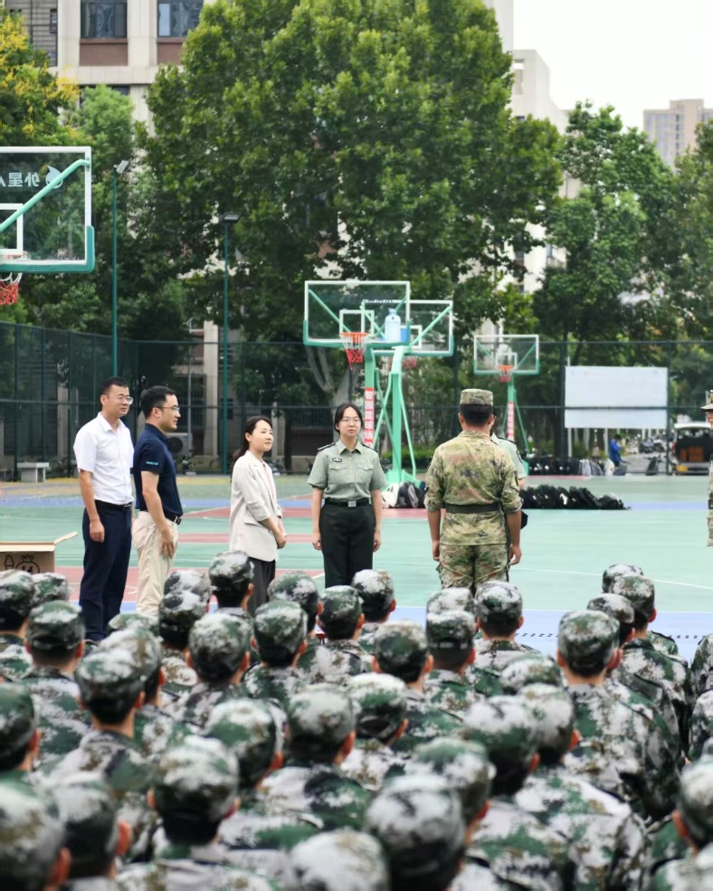 秋阳淬炼青春志,戎装不负少年时。2025年9月18日上午9点,为深入了解军训组织实施情况,材料学院党委书记罗小寒,材料示范学院(微电子学院)党委书记严岿,材料学院党委副书记沈国芳,材料学院学工办主任周雄专程前往智园篮球场军训现场,与辅导员梅思源、王滇一同组成慰问小组,向带训教官和全体参训学员致以亲切慰问,传递学院的殷殷关怀与深切期望。