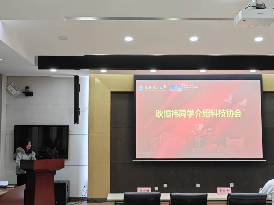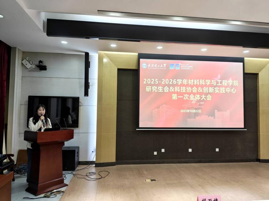 材料学院科技协会主席耿恒祎同学就协会概况向与会师生作了系统介绍。她首先阐述了协会的组织架构与核心职能,明确了其作为学院学生科研创新实践平台的重要定位。随后,她详细介绍了当前阶段的重点工作规划与日常活动安排,并具体列举了系列学术专题讲座及跨校材料学科研究生研讨会等品牌活动,这些常态化的学术交流平台为同学们拓展专业视野、促进科研互动创造了宝贵机会。