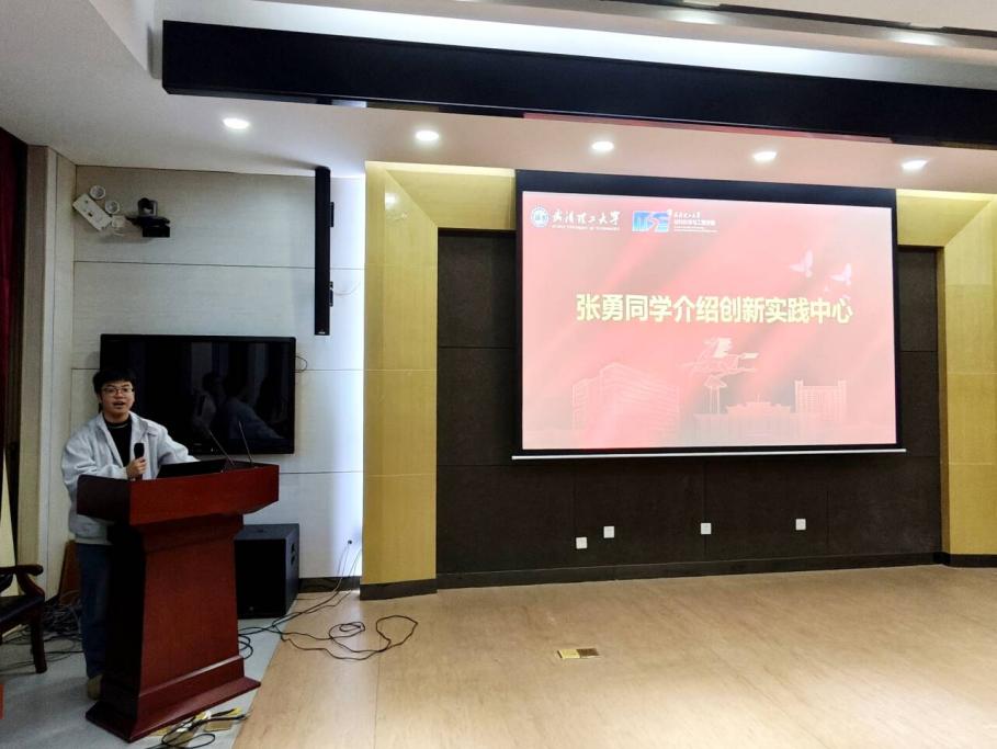 材料学院创新实践中心主任张勇同学介绍创新实践中心。他首先概述了中心的组织定位与主要工作职责,并详细说明了当前阶段的核心任务与未来发展愿景。他强调,中心始终致力于打造开放共享的创新实践平台,积极引导并支持同学们参与各类科研创新项目与实践活动。他同时诚挚欢迎同学们为中心的建设与发展建言献策,共同推动学院创新实践氛围迈向新台阶。