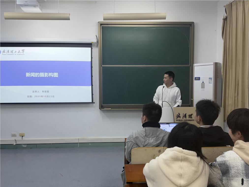 分享会上,朱思盟首先阐述了新闻的本质,强调其是对客观事实的叙述,并指出时效性、真实性与准确性是新闻的核心价值。随后,他围绕新闻六要素、具体写作方法及摄影基础等方面展开了详细讲解。