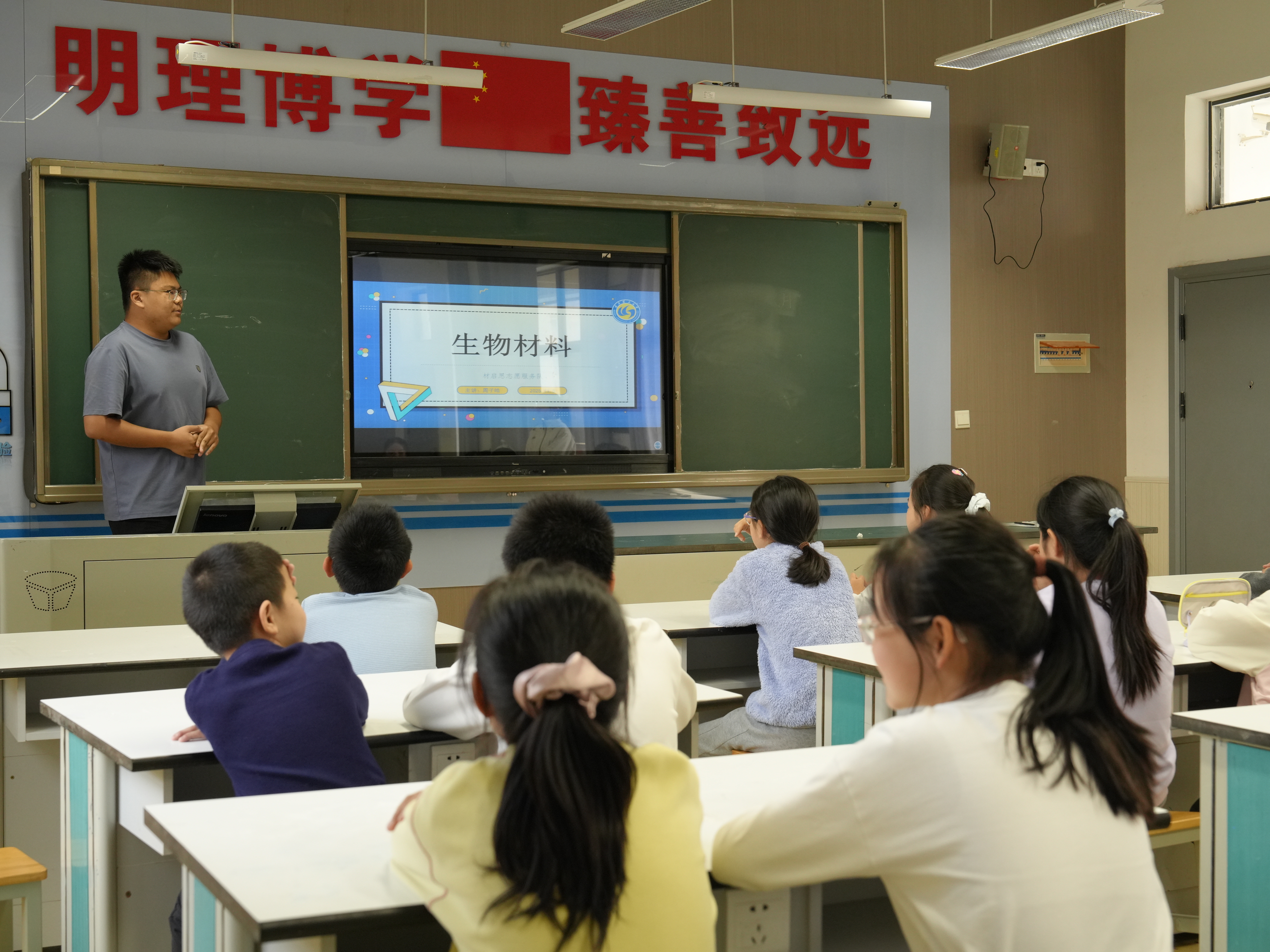 2025年11月5日下午四点,材启思服务队走进武汉理工大学附属小学,为小学生们带来了一堂别开生面的“生物材料”主题科普课程。