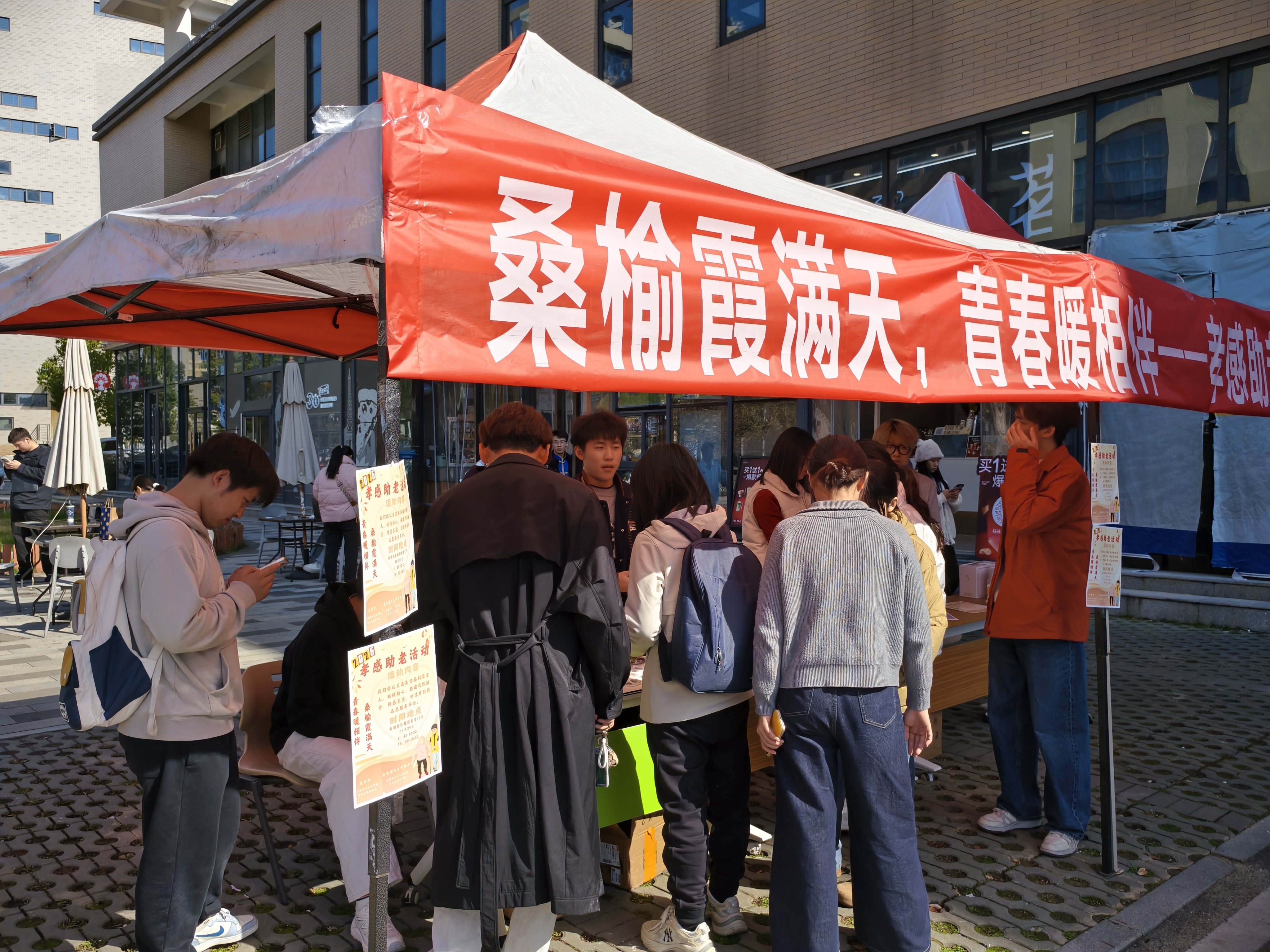 11月29日,中南财经政法大学经济学院青年志愿者协会与武汉理工大学材料科学与工程学院青年志愿者协会,在南湖校区越园食堂门口联合举办了“桑榆霞满天,青春暖相伴”孝老助老义卖活动,旨在以志愿行动践行敬老初心,以青春力量助力老年公益事业。