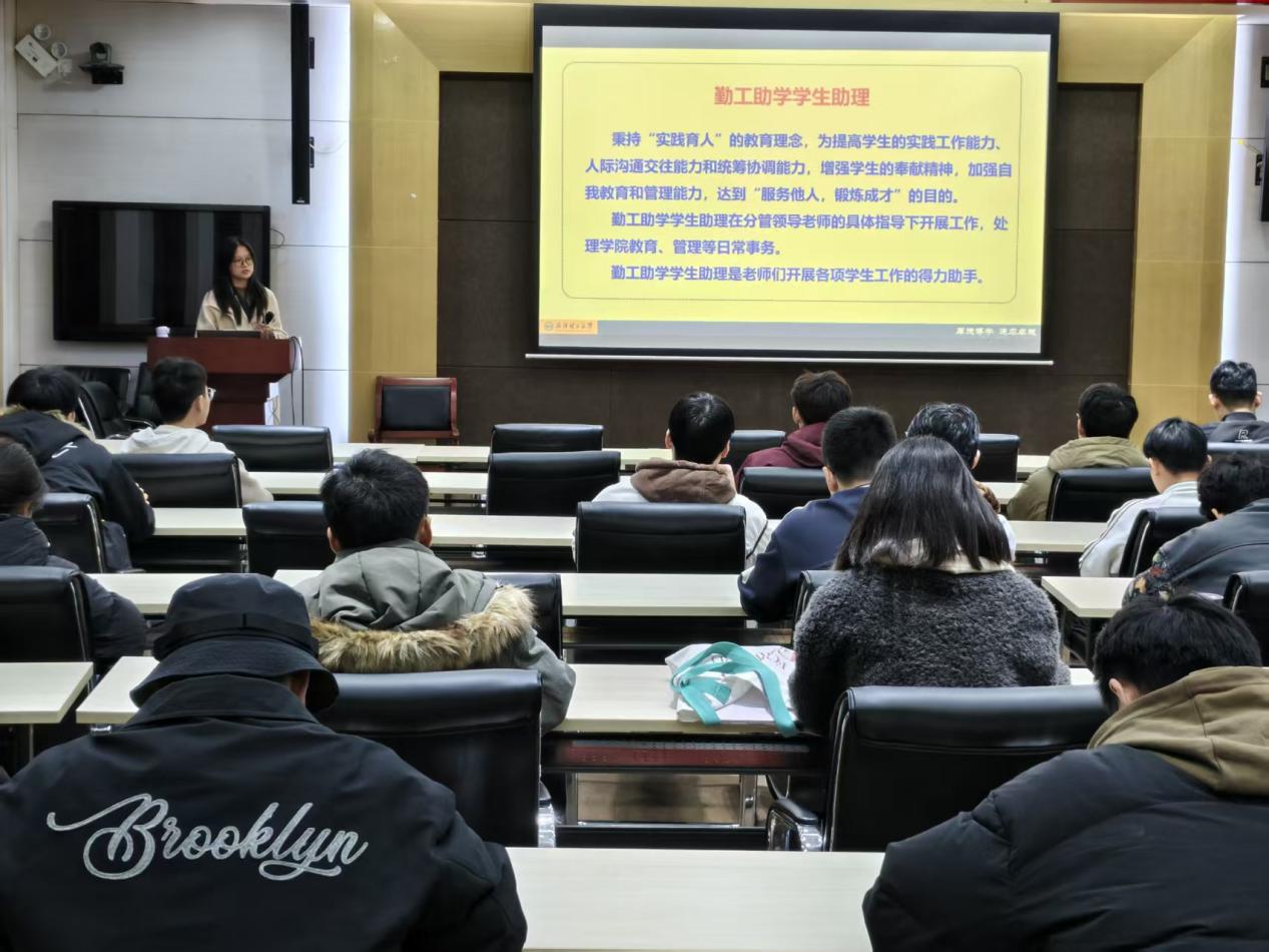 为深入贯彻“实践育人”教育理念,切实发挥勤工助学岗位在资助育人和学生能力培养中的双重作用,12月2日晚,学院于测试中心报告厅组织开展了勤工助学宣讲暨学生助理培训会。本次培训由学院负责资助工作的程佩仪老师主讲,全体本科生、研究生勤工助学学生助理参加,旨在提升学生实践工作、人际沟通及统筹协调能力,助力学生在服务他人中锻炼成才。