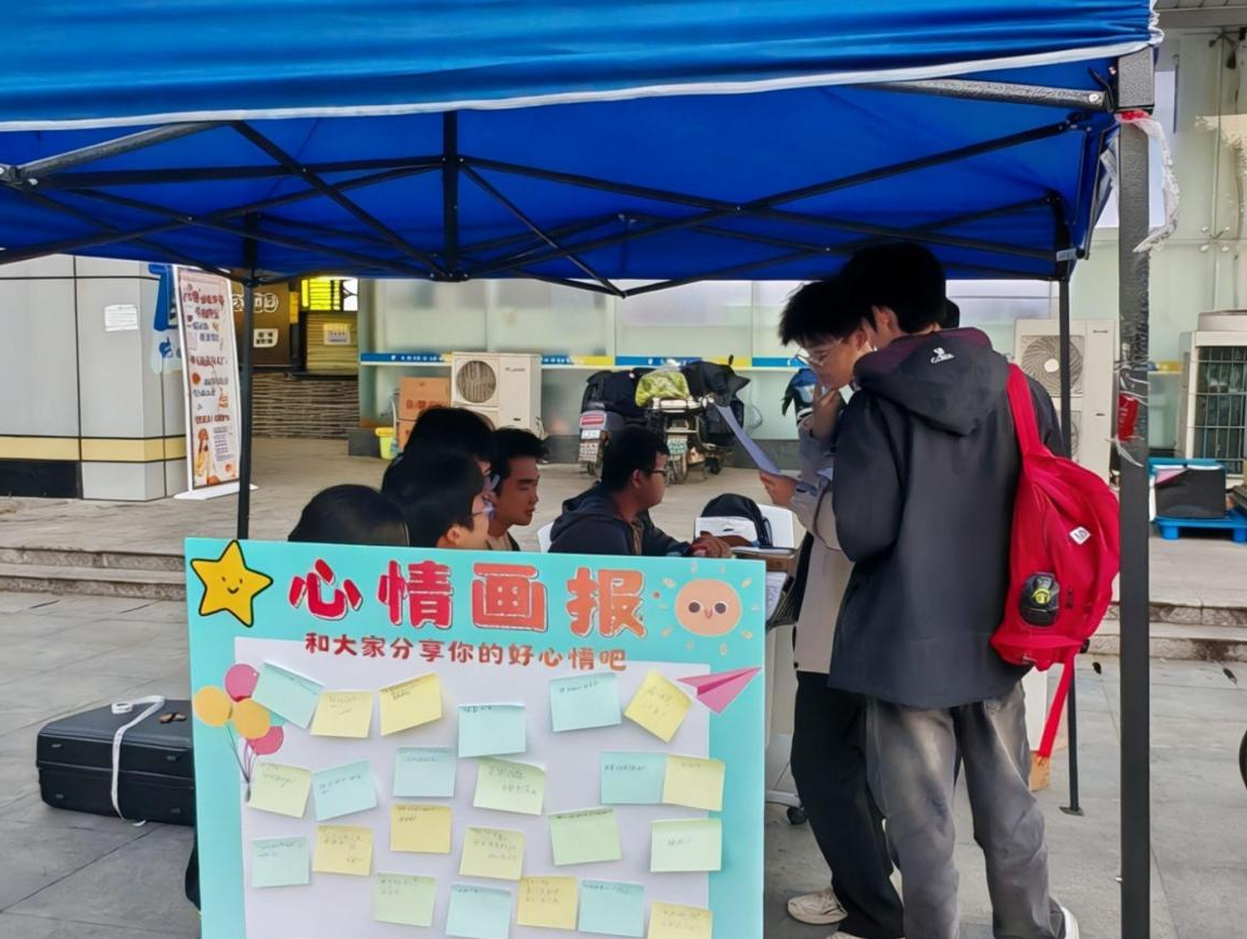 “原本只是路过,却被热闹轻松的氛围吸引了。在‘心情画报’上写下近期压力时,感觉像卸下了一个包袱,而看到陌生人留下的鼓励话语又特别温暖。”现场参与同学表示,“这种活动没有距离感,在游戏和互动中就完成了自我调节,也学到了实用的心理知识。”