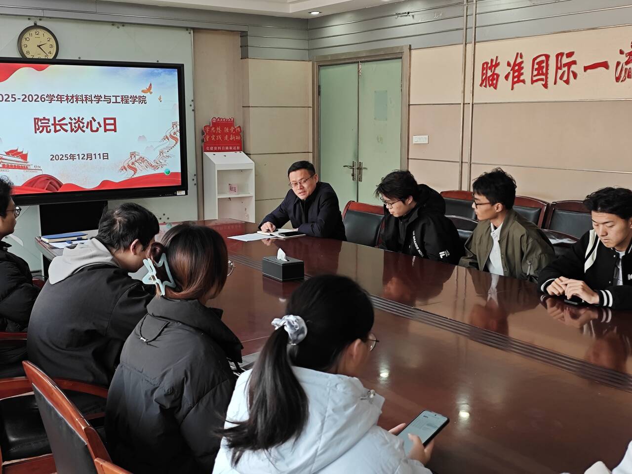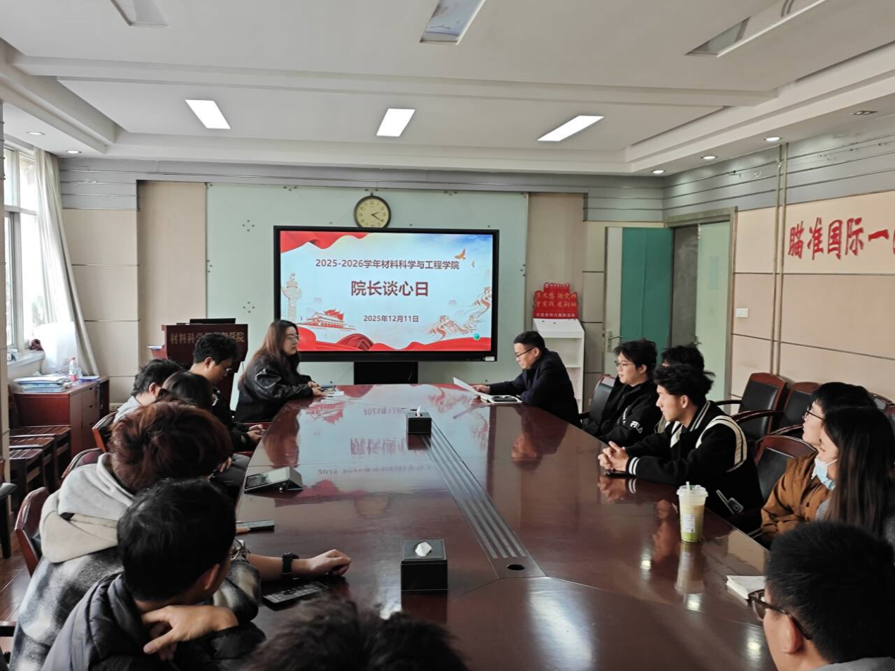 12月11日下午,材料学院在工大楼317会议室召开“院长谈心日”活动。学院副处级组织员胡晓平、研究生辅导员贺羽知及学生代表出席会议,活动由学院创新实践中心主办。