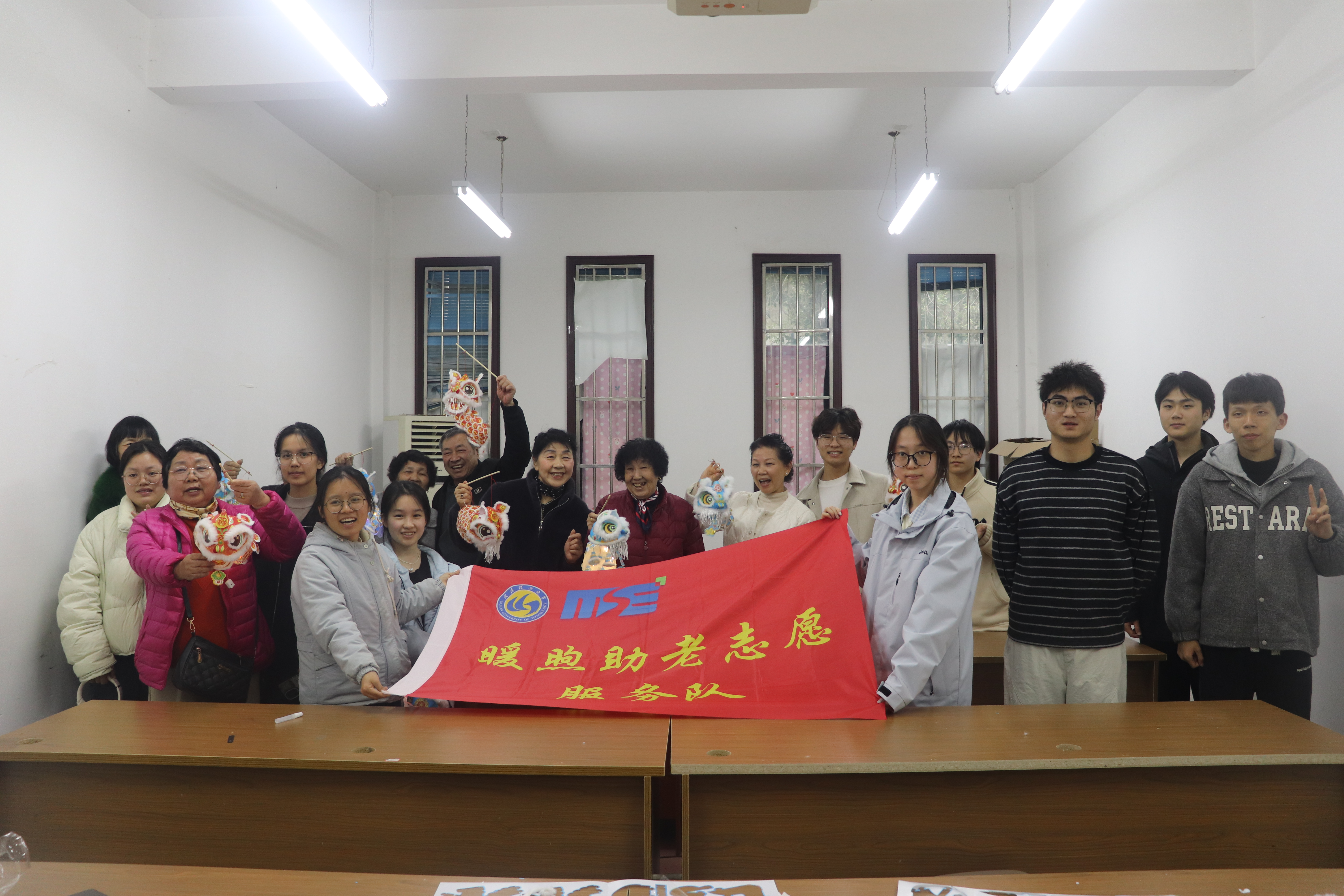 3月19日下午三点,材料学院暖煦助老服务队走进南湖新城社区,为老人们带来了一场温情洋溢的“制作醒狮灯笼”手工活动。