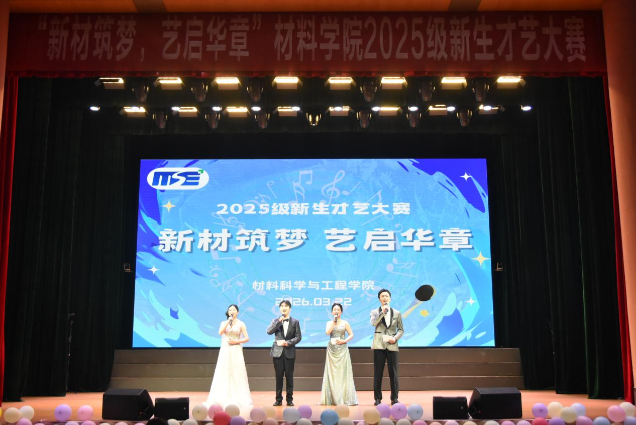 华灯初上,青春启航。2026年3月22日晚,材料学院“新材筑梦,艺启华章”2025级新生才艺大赛在马房山校区西院大礼堂圆满落幕。材料学院副院长黄文超、党委副书记沈国芳,团委书记原思辰,2025级辅导员及班主任,学院和学部相关办公室老师以及全体新生齐聚一堂,共同开启这场视听盛宴。