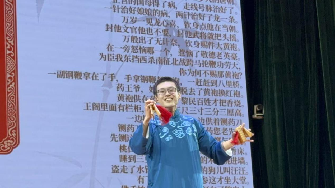 传统艺术的韵味与潮流才艺的活力轮番登场,尽显学子们的多元风采。李书同同学手持快板登场,一气呵成地带来《全本同仁堂》。利落的吐字与扎实的功底赢得满堂喝彩,让观众领略到中华传统曲艺的独特魅力,感受百年文化传承的坚守。叶子轩、齐豫、郭悛阳三位同学则以Beatbox《WUTeam》惊艳全场,精湛的口技精准模拟出鼓点、电音等多种音效,强劲的节奏感燃动全场,展现出当代大学生不拘一格的潮流态度。