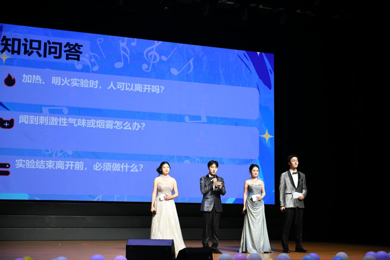 安全科普融于文艺舞台,趣味问答筑牢科研防线。本次新生才艺大赛创新增设实验室安全知识问答环节,打破文艺活动与安全教育的边界,以趣味形式推动安全教育入脑入心。环节中,主持人依次抛出三道贴近日常实验的安全问题,台下同学踊跃举手、积极抢答,现场气氛活跃。以艺载教、以知护航,让安全教育鲜活入心,为整场大赛添上了厚重且深刻的安全底色,让青春风采与安全意识同频绽放。