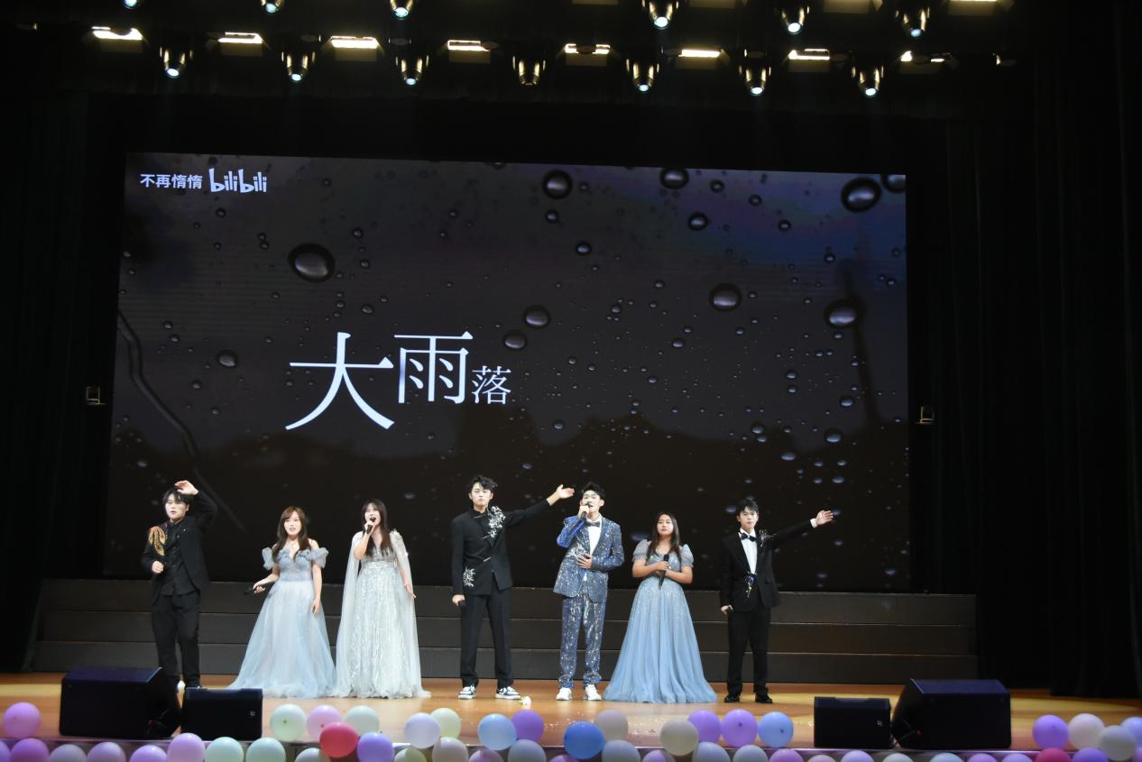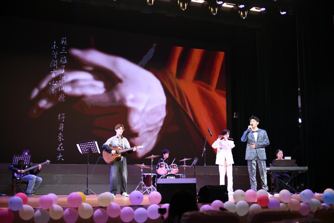 大赛临近尾声,青春故事温暖收官。综艺队带来情景表演《今天又想恋爱了》,剧情贴近校园生活,模拟AI豆包场景,生动刻画了当代大学生对爱情的憧憬与困惑,诙谐真挚的表演在欢声笑语中引发全场共鸣,勾起大家对青春情感的美好回忆。最后,声乐队献上歌曲串烧《花田墨雨,爱有归途》,温暖细腻的歌声娓娓道来,每一段旋律都直击心底,为整场大赛画上温馨而圆满的句号。
