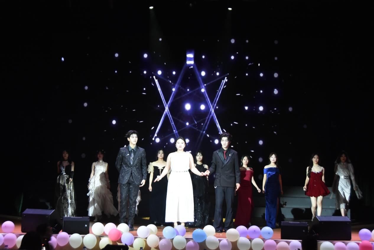 视听体验持续升级,古典与现代的碰撞带来别样惊喜。器乐队与和声乐队强强联手,献上《烟花易冷+susan说》,悠扬的器乐与婉转的歌声交融,古典韵味与现代曲风完美融合,带来耳目一新的听觉享受。随后,文工团礼仪队的走秀《superstar》惊艳四座,模特们利落的台步与动感音乐完美契合,气场全开;而神秘嘉宾辅导员王滇的登场,更是将现场氛围推至高潮,掌声与欢呼久久回荡。
