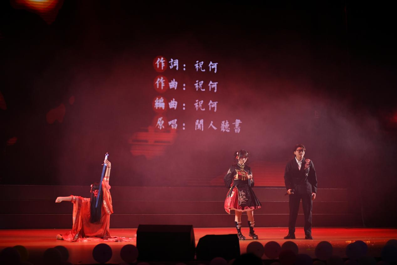 开场的热浪尚未散去,精彩表演便接连上演。杨宜钢同学登台献唱经典粤语金曲《护花使者》,他富有磁性的嗓音与洒脱的台风相得益彰,将这首家喻户晓的歌曲演绎得独具韵味,引得台下观众纷纷随声轻唱,沉浸在动人的旋律中。紧随其后,星光合唱团带来活力满满的《恋爱ing》,成员们配合无间,整齐的律动与灿烂的笑容相映成趣,将青春的欢愉与甜蜜尽数传递,现场处处洋溢着轻松甜暖的气息。