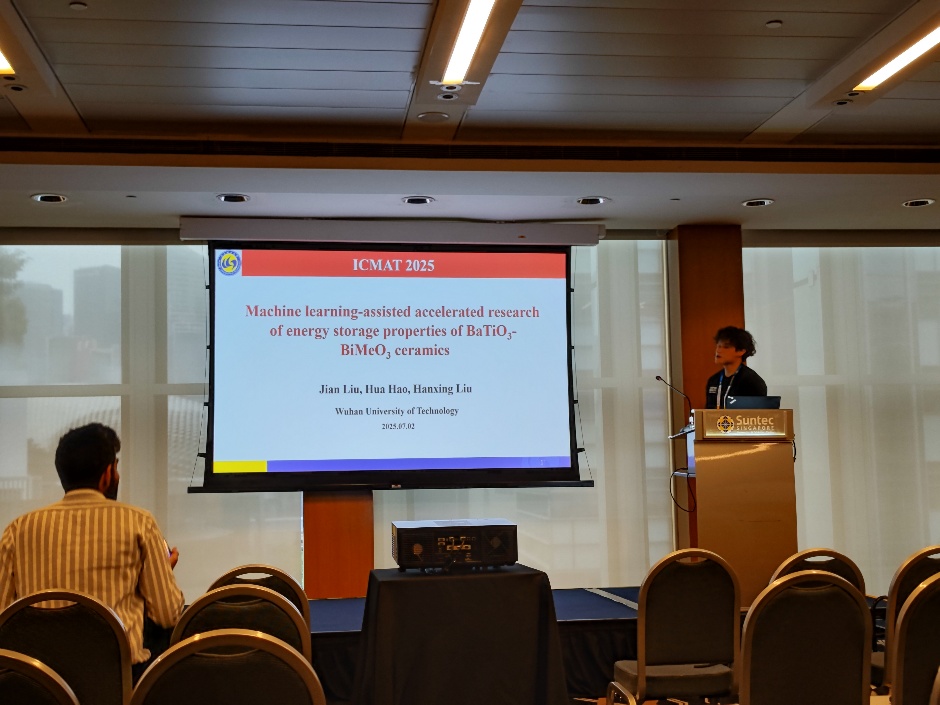 武汉理工大学材料学院刘坚博士于2025年7月2日在铁电、压电和电介质的信号与能量转换及存储分会场,作题为“Machine Learning-Assisted Accelerated Research of Energy Storage Properties of BaTiO3−BiMeO3Ceramics”的口头报告。汇报内容:为加速BaTiO3-BiMeO3陶瓷储能性能研究,构建了含元素物理化学特性、相关属性信息和烧结工艺参数的三维特征向量空间,采用两种策略测试6种机器学习模型,经贝叶斯优化后,GBR模型预测恢复能量密度的10折交叉验证r²达0.974、LGBM模型预测效率的r²达0.894,同时通过固相反应法制备(1-x)BT-xBZT陶瓷并测试P-E滞回环验证模型,有效提升了该类陶瓷储能性能预测的效率与准确性。