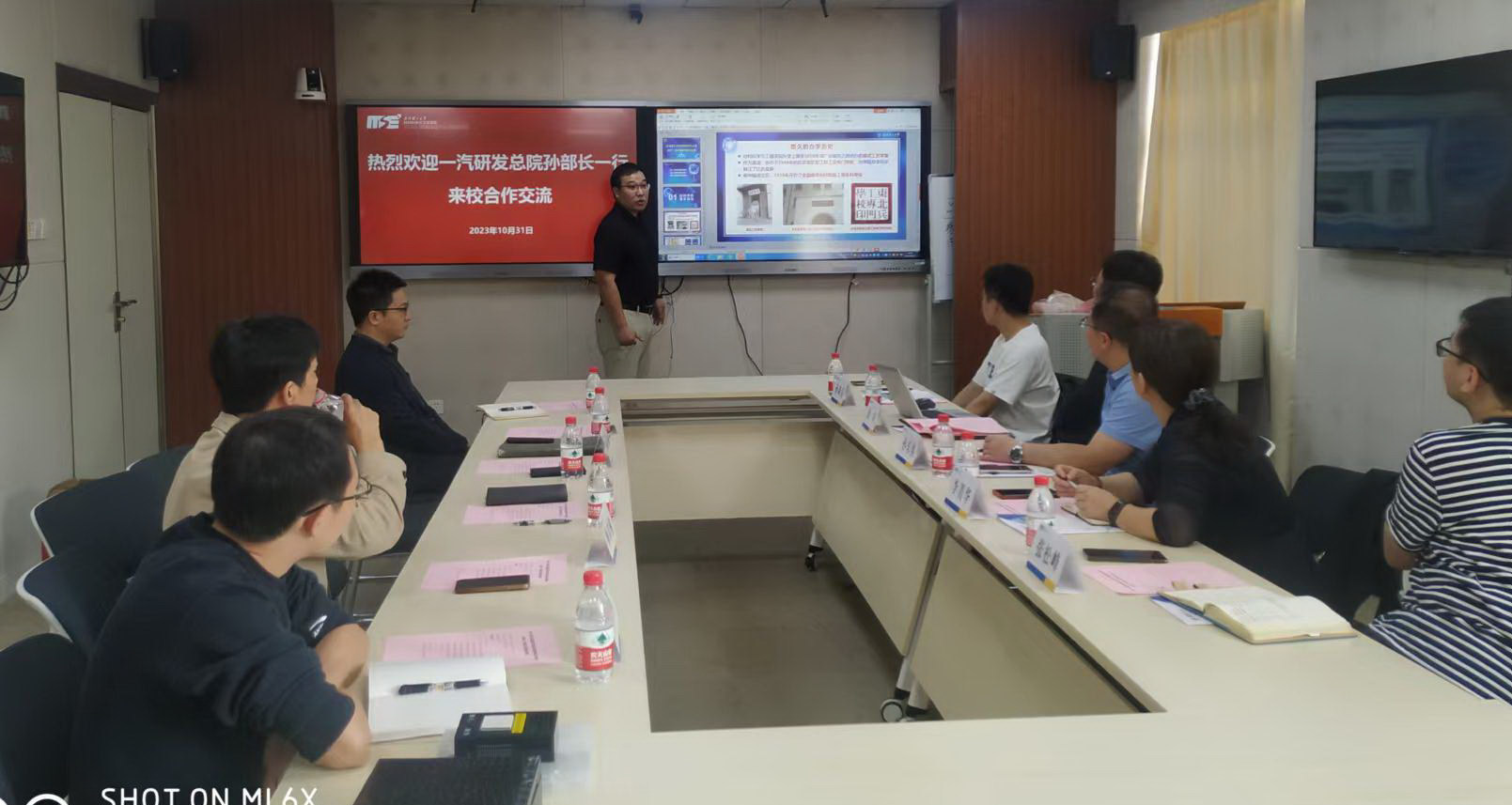 孙东睿部长介绍了中国一汽及高端汽车集成与控制全国重点实验室的情况及重点研究领域,并指出全球汽车产业正经历新一轮的产业革命,希望结合学校优势专业和技术,在汽车的“智能化”“功能化”“轻量化”“安全性”等方面开展深度技术合作,并形成合力实现关键技术突破。随后,材料复合新技术国家重点实验室和材料学院的相关研究人员针对技术需求,围绕着新型玻璃技术,储能材料,热电材料和复合材料等方向介绍了个人及团队研究成果,双方就技术需求进行了充分讨论。