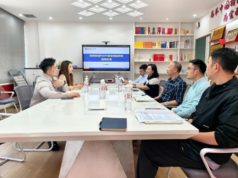 4月9日上午,曼迪匹艾(武汉)科技服务有限公司(MDPI)《Polymers》期刊责任编辑贾继康、出版人郭蕾一行莅临我院开展合作交流。学院副院长文佐勤、黄文超,高分子系副教授陈万煜、学工办主任周雄、辅导员陈鹏航等参加本次交流会议。会议由学院党委副书记沈国芳主持。