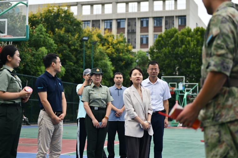 秋阳淬炼青春志,戎装不负少年时。2025年9月18日上午9点,为深入了解军训组织实施情况,材料学院党委书记罗小寒,材料示范学院(微电子学院)党委书记严岿,材料学院党委副书记沈国芳,材料学院学工办主任周雄专程前往智园篮球场军训现场,与辅导员梅思源、王滇一同组成慰问小组,向带训教官和全体参训学员致以亲切慰问,传递学院的殷殷关怀与深切期望。