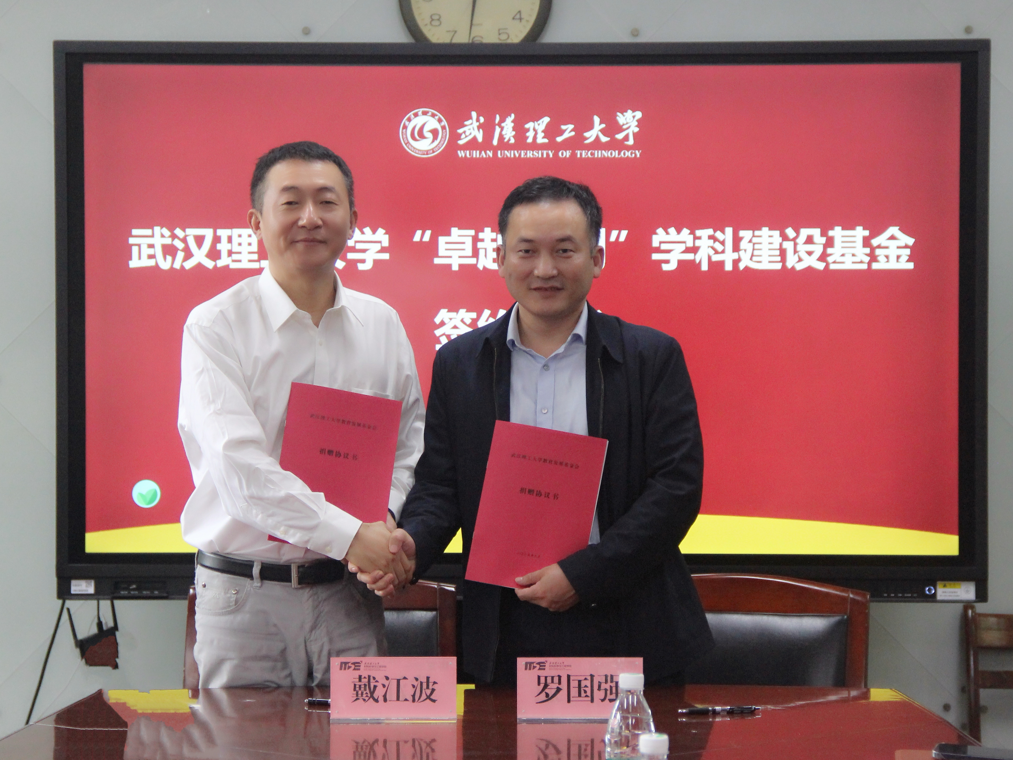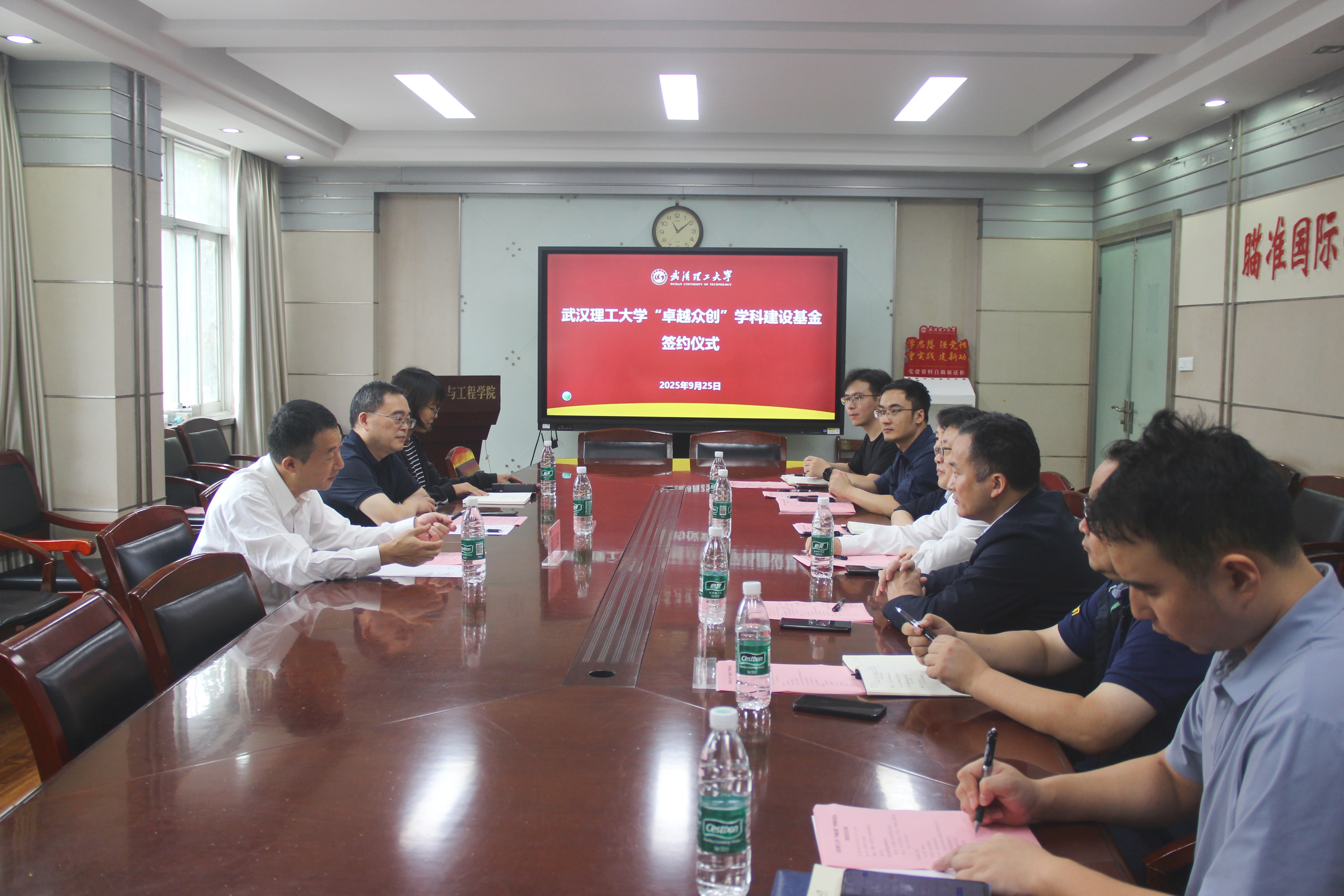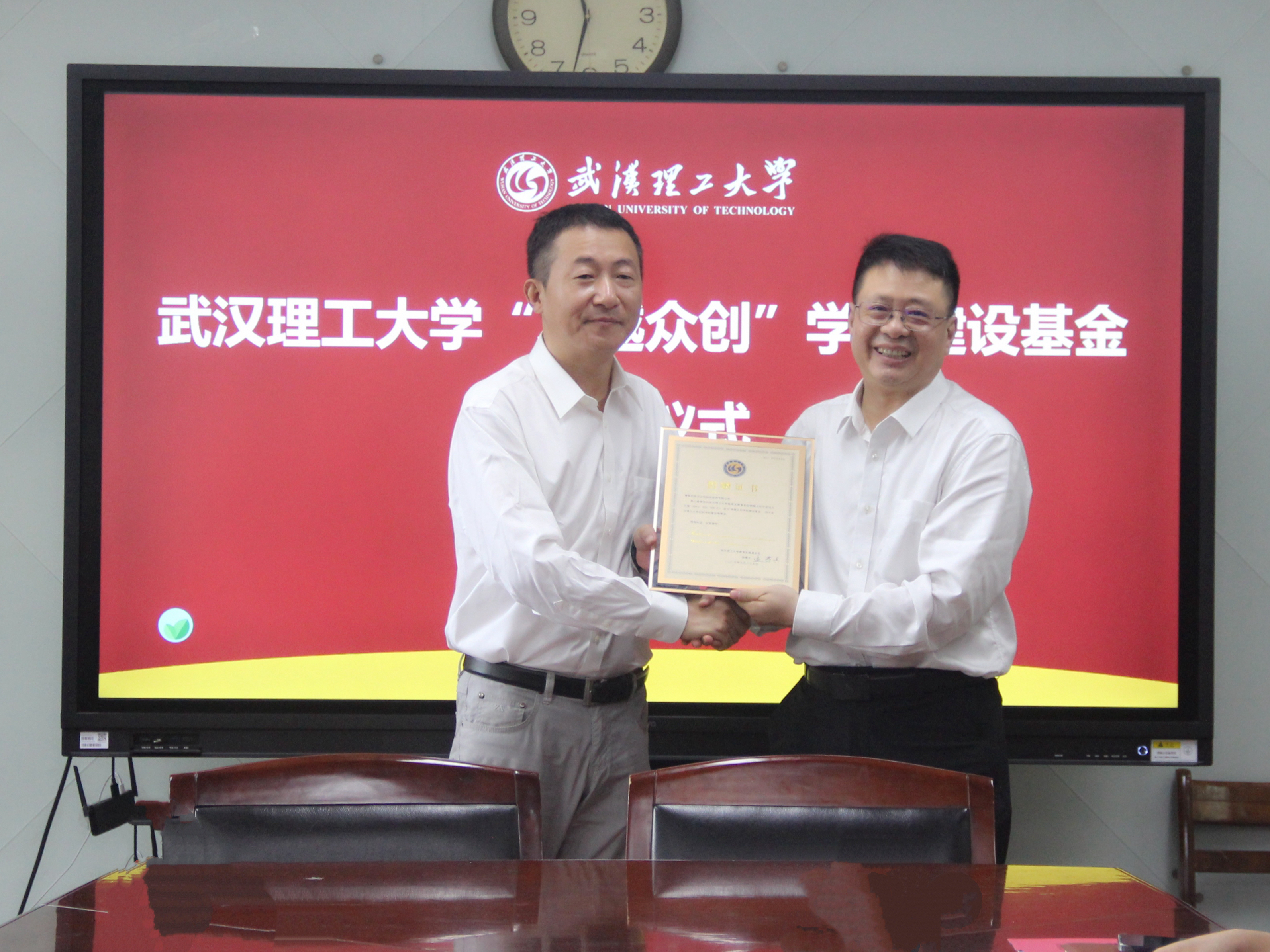 9月25日上午,武汉理工大学“卓越众创”学科建设基金签约仪式在马房山校区工大楼317室隆重举行。武汉理工大学副校长麦立强,材料学院院长罗国强、党委书记罗小寒,社会合作处副处长杨万庆、学院党委副书记沈国芳、学工办主任周雄和辅导员闫博康出席仪式。武汉众创科技投资有限公司执行董事戴江波、武汉校友会秘书长张本仙、副秘书长高俊出席会议。仪式由材料学院院长罗国强主持。