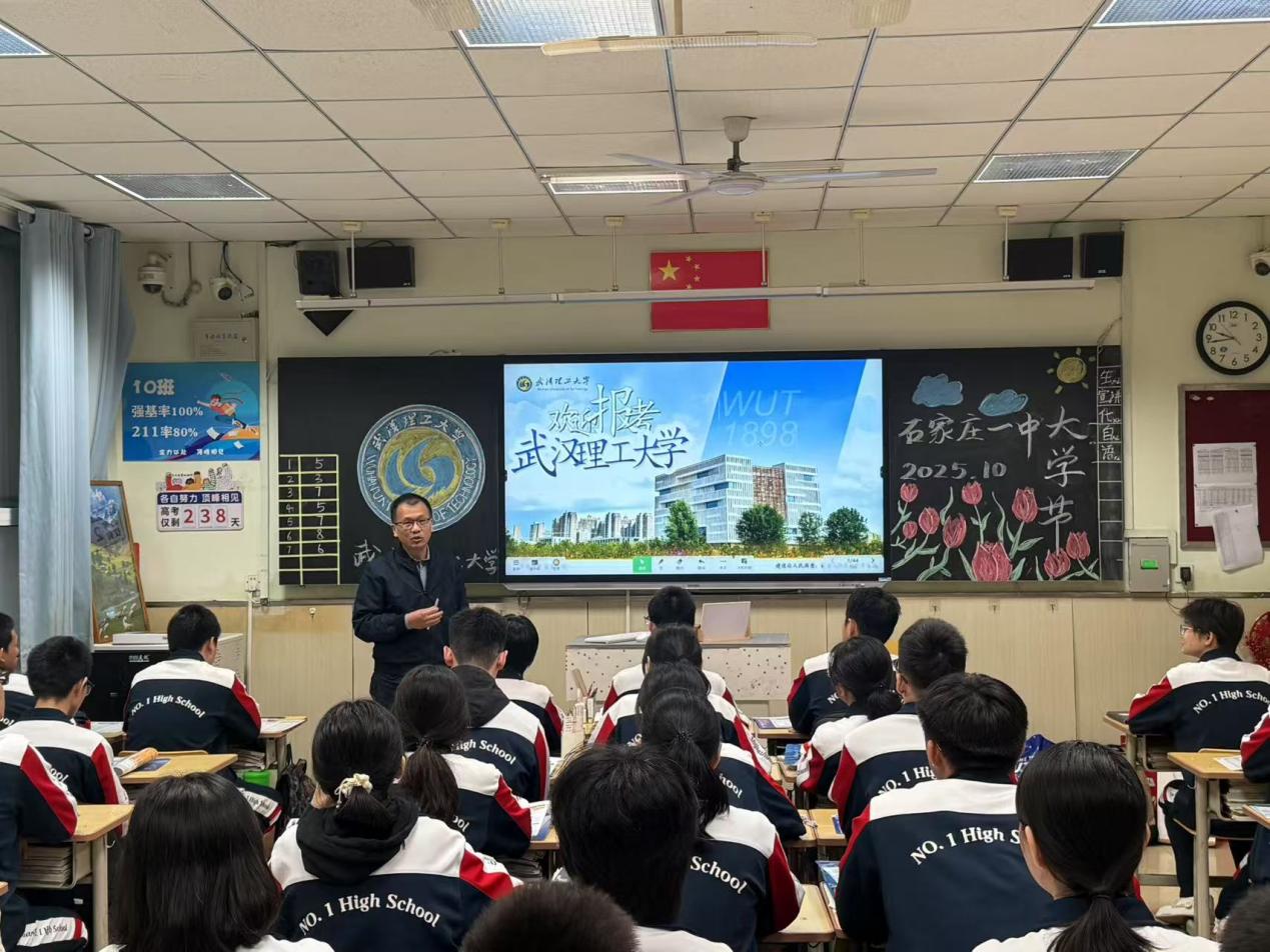 为进一步推进学校招生宣传工作,帮助高中学子们更好地了解大学的特色与优势,2025年10月12日,材料学院招生宣传工作组前往石家庄市第一中学参加“大学节”招生宣讲活动。材料学院复合材料与工程系教授王钧和兼职辅导员蔡俊参与本次活动。