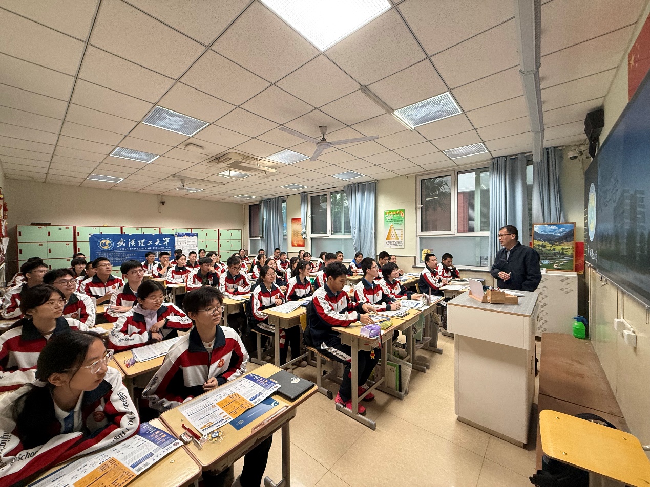 随后,王钧教授围绕武汉理工大学建校历史、学科建设、人才培养、师资力量、校园环境以及在各领域取得的卓越成就展开全方位介绍,与同学们分享武汉理工大学校友在各行各业的成长轨迹,让同学们对武汉理工大学有了更加深入的了解。王钧教授重点介绍了武汉理工大学往年招生政策和计划,详细回答了同学们提出的问题。