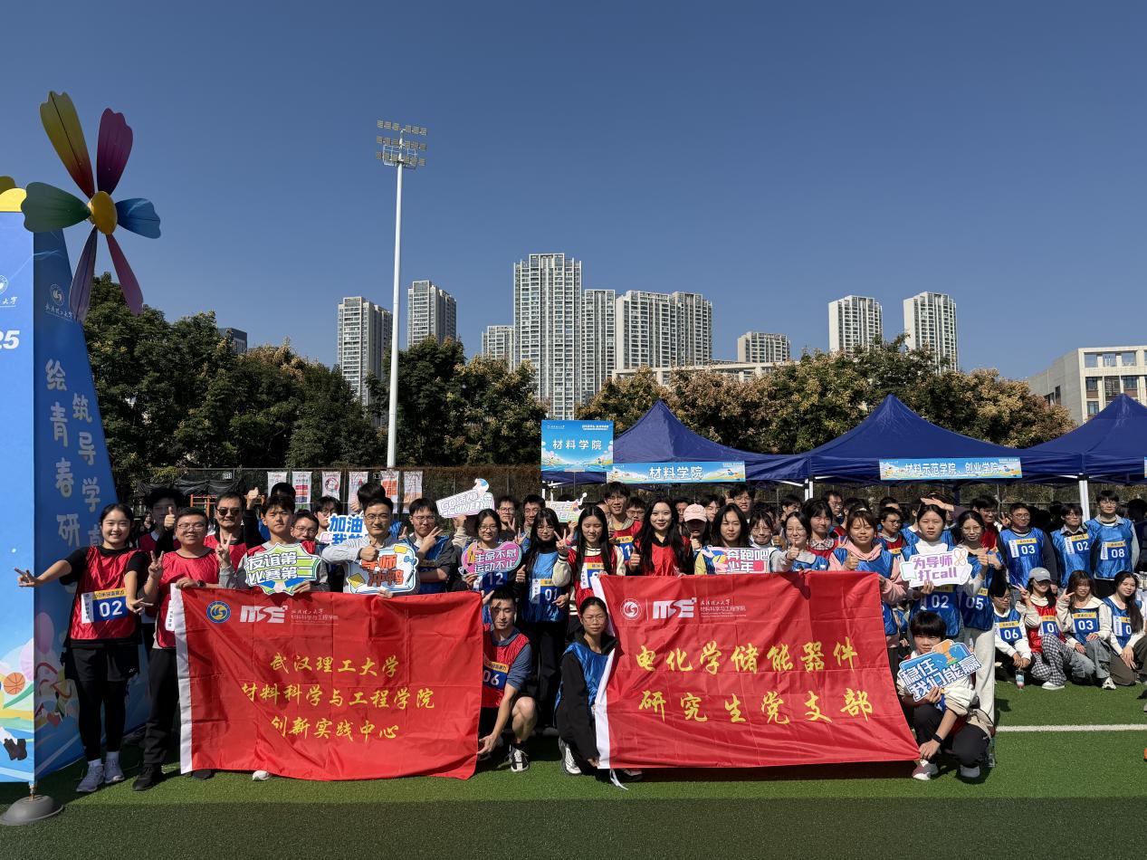 秋高气爽,奋进正当时。迎着金秋的微风,2025年10月23日下午1时,武汉理工大学第三十二届运动会暨第五届研究生师生运动会在南湖校区田径场开幕。本次比赛中,材料学院师生展现了“团结协作、勇于拼搏、健康向上”的精神,以昂扬的姿态投入到各项赛事中。导师与学生并肩作战、默契配合,在拼搏中展现力量与激情,在欢笑中增进理解与友谊,共同描绘出一幅团结奋进、活力洋溢的导学画卷。