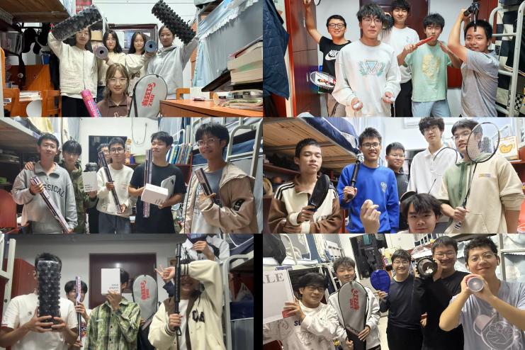 2502班班主任朱晓萌老师为学生代表发放体育器材。他鼓励同学们在奔跑中凝聚班级精神,将赛场上的顽强意志转化为未来钻研材料科学的持久动力。仪式最后,全体师生在体育学院教练的带领下,一同进行热身活动,伴随动感音乐舒展身体,以昂扬的姿态迎接接下来的比赛。