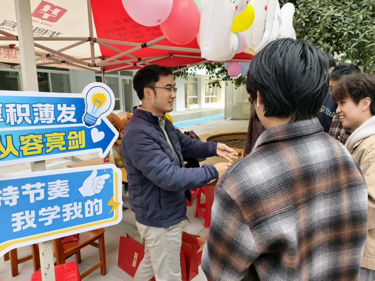 老师们围坐在同学们身边,耐心倾听大家在冲刺阶段面临的焦虑、复习困惑与心理压力,并一一给予鼓励与建议:“最后阶段要注重劳逸结合,保持平稳心态最重要”。沈国芳副书记为同学们送上实用的考研助力礼包以及寓意“一举夺魁”的向日葵,传递学院的温暖关怀与殷切期许。现场学子敞开心扉、笑声阵阵,在紧张备考之余感受到浓厚的支持与暖意。