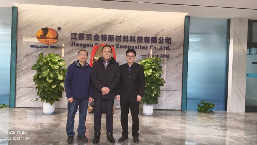 2025年12月13日,为加强校友联络、深化产学研合作,我院复合材料与工程系教师郭冬云、杨小利一行专程走访了位于江苏省的优秀校友企业——江苏贝金特新材料科技有限公司。公司董事长周卫东(我校复材专业90级校友)热情接待了母校老师的到访。